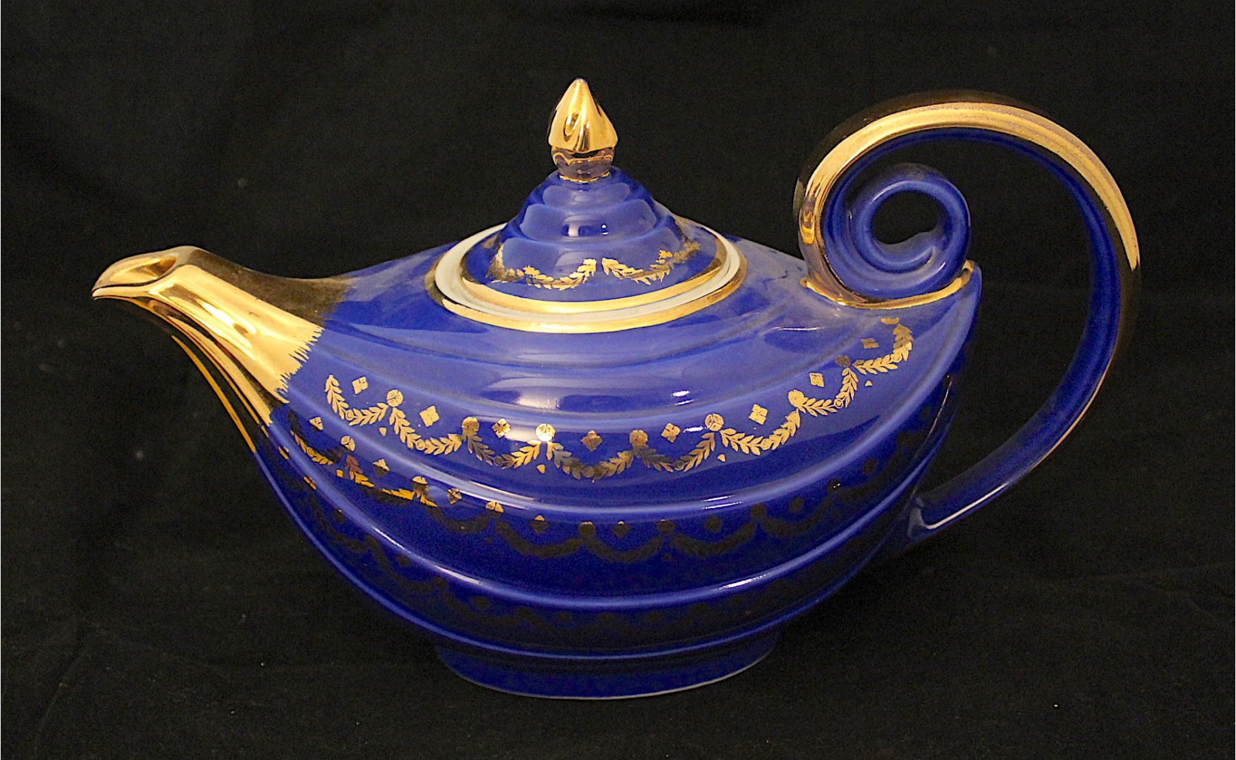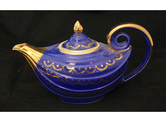 Hall Aladdin Teapot beautiful cobalt blue & gold 6 cup 0676 USA (087)