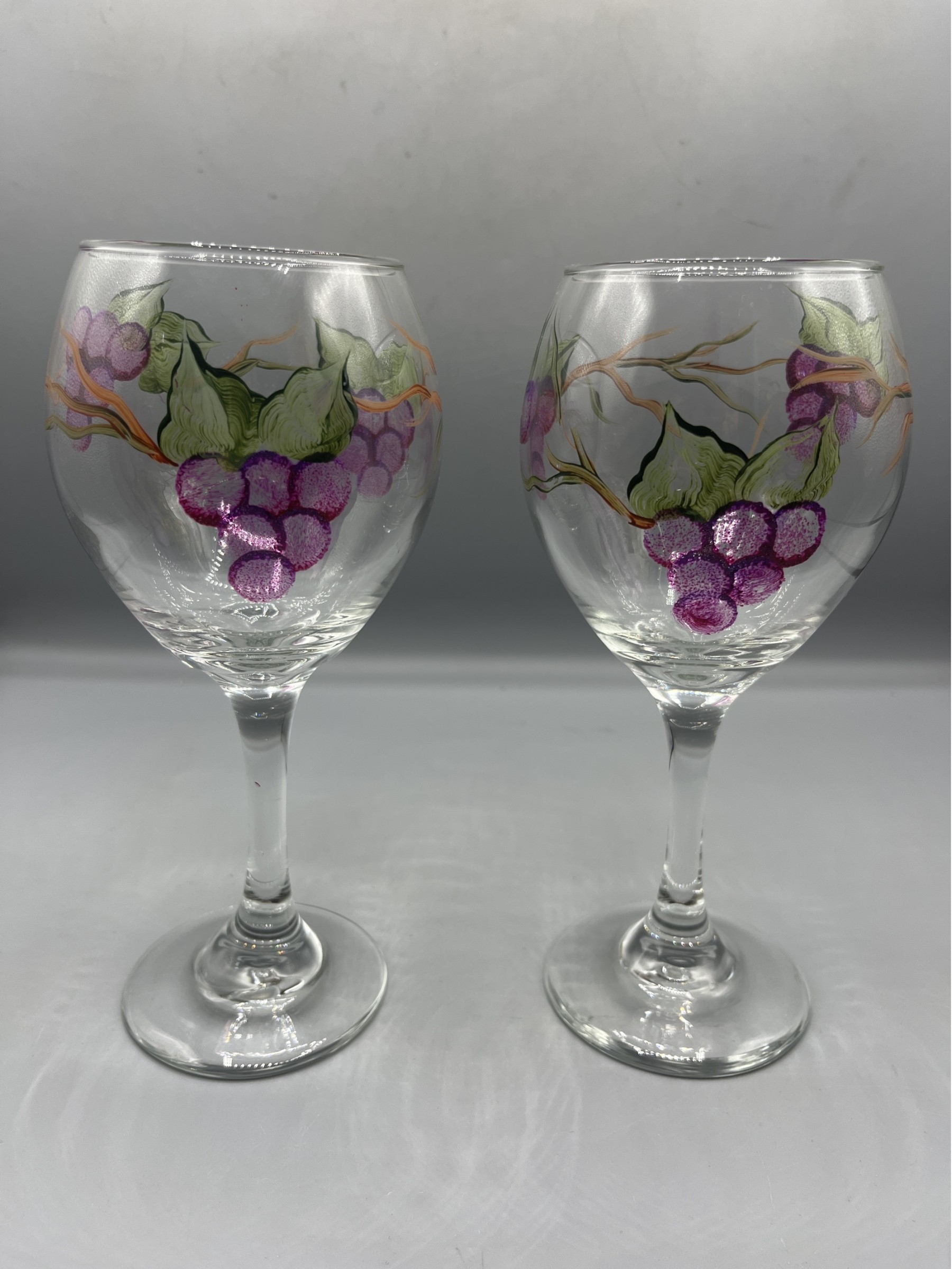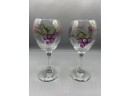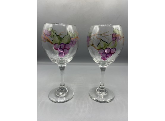 Hand Painted Grape Pattern Wine Glasses - 2 Total