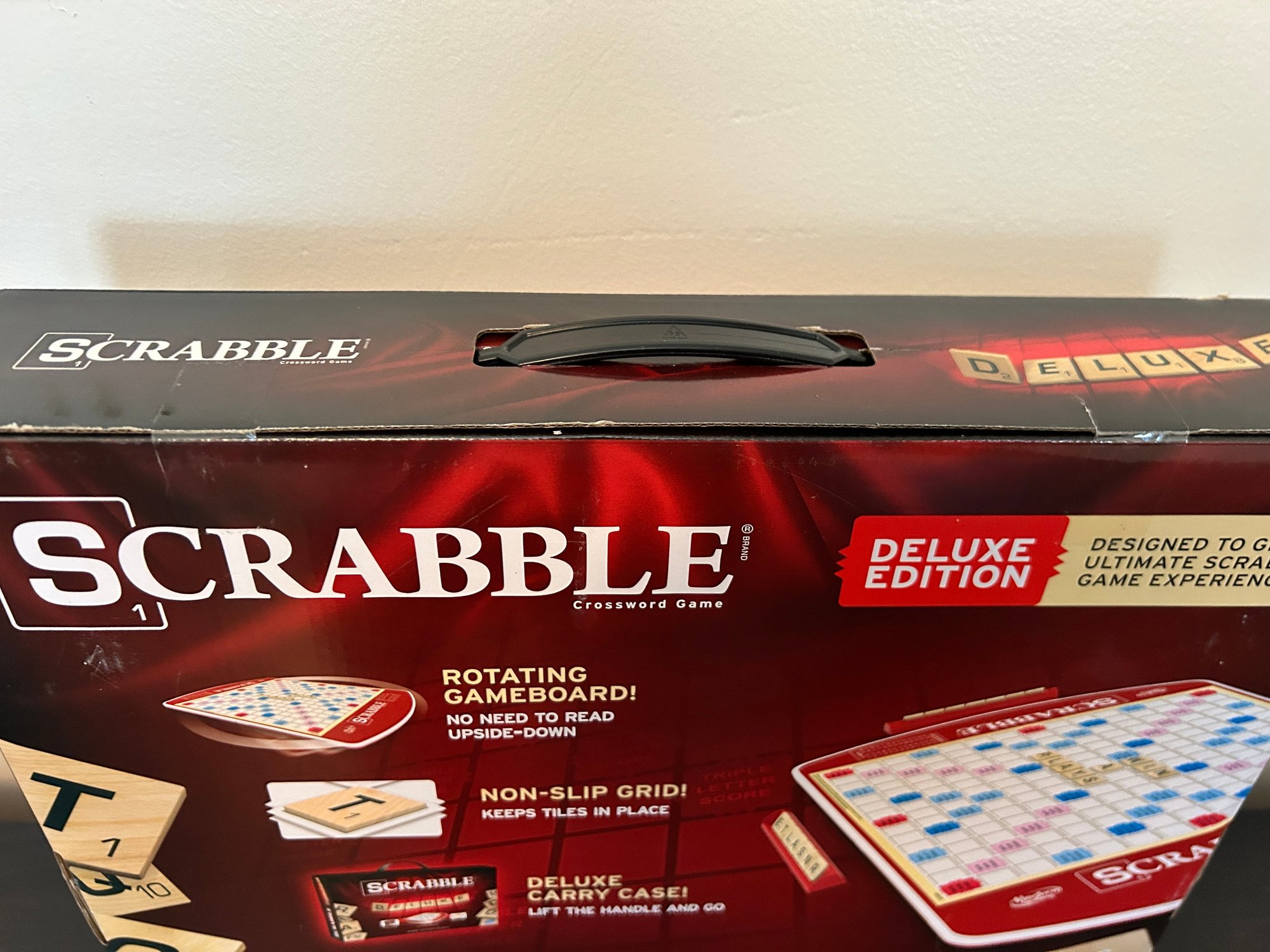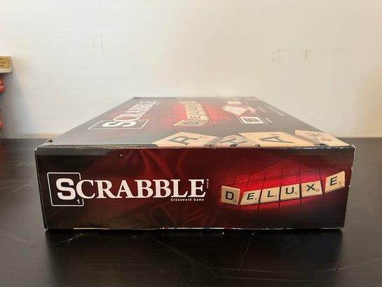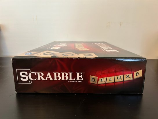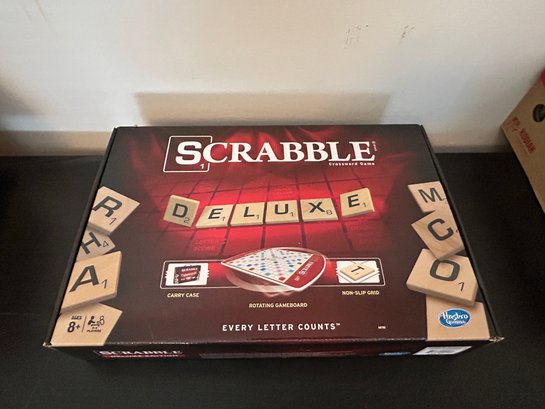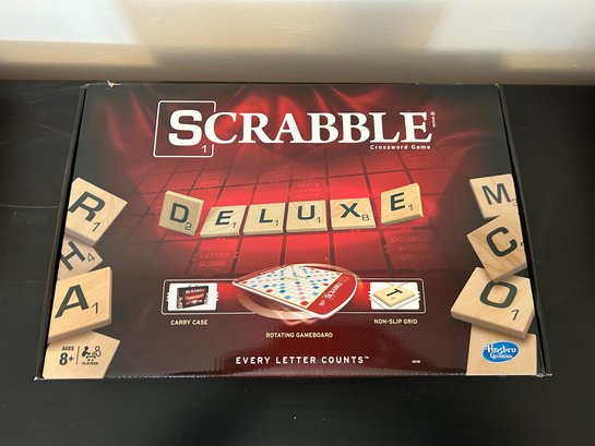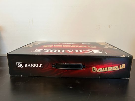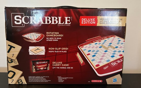 Hasbro Scrabble Deluxe Edition board game featuring a rotating gameboard and a carry case, NOS