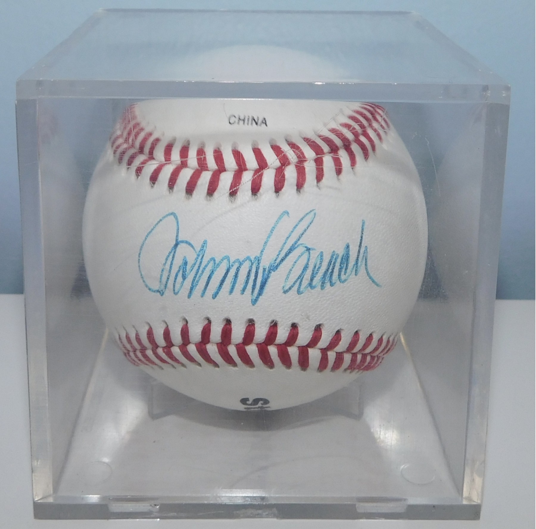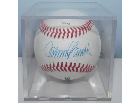 Johnny Bench Autographed Baseball In Plastic Holding Case