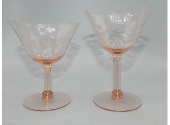 Pink Depression Glass One Wine Glasses One Cordial Glass