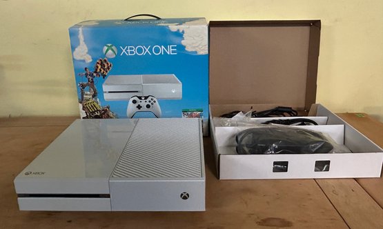 includes a unique Cirrus White 500GB console and matching wireless controller. This limited edition bundle was originally released in October 2014 to coincide with the launch of the game Sunset Overdrive.