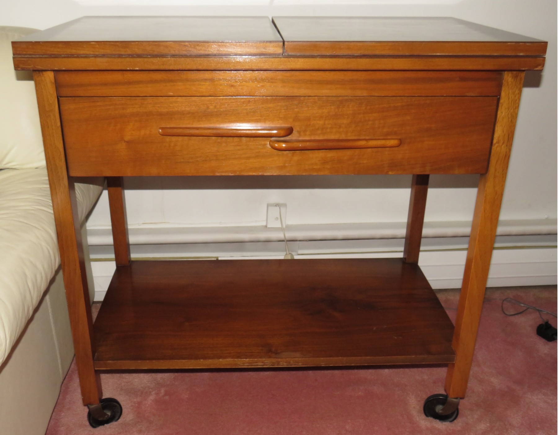 Mid Century Modern Cart/Table With Extending Top & Wheels