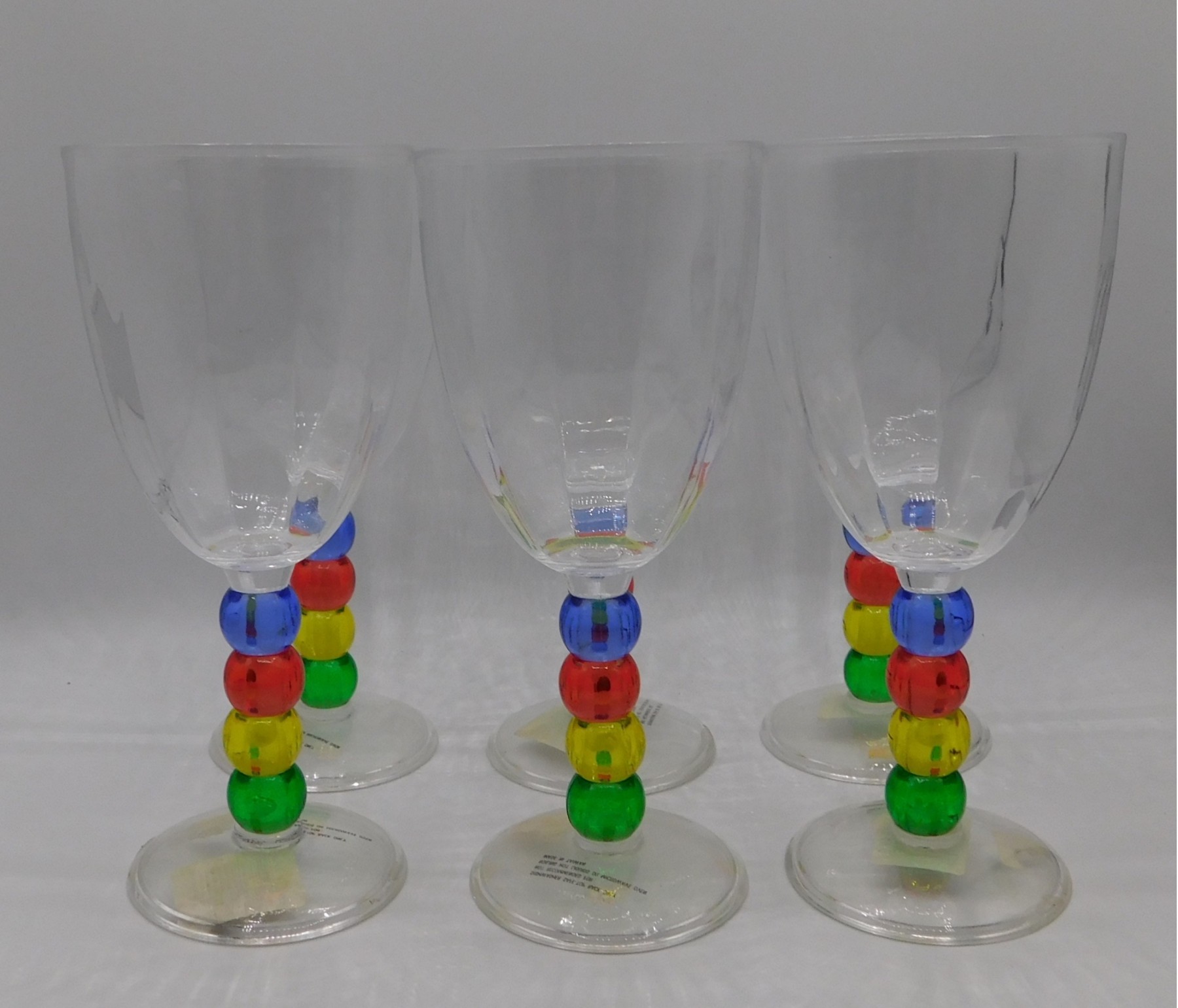 Multicolor Bubble Stem Plastic Drinking Goblets - Set Of 6