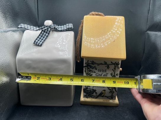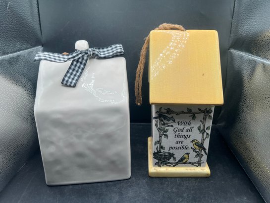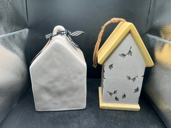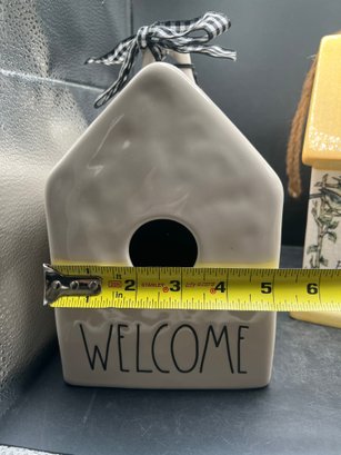 Rae Dunn Artisan Collection Welcome Birdhouse and Grasslands Road Ceramic Birdhouse - 2 PCS