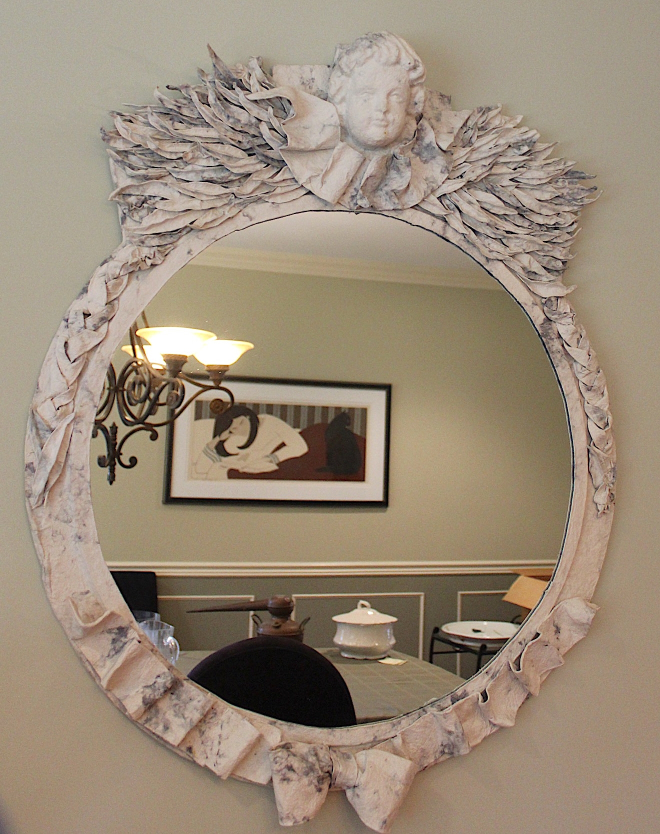 RARE F.B Fobb Paper Mache Wall Mirror Cherub (095)