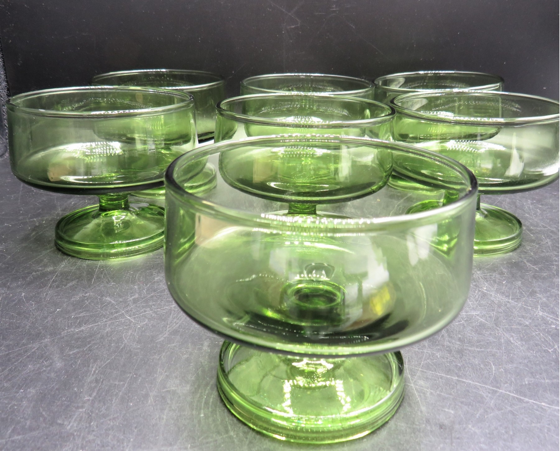 Green Glass Footed Desserts Glasses - Set Of 7