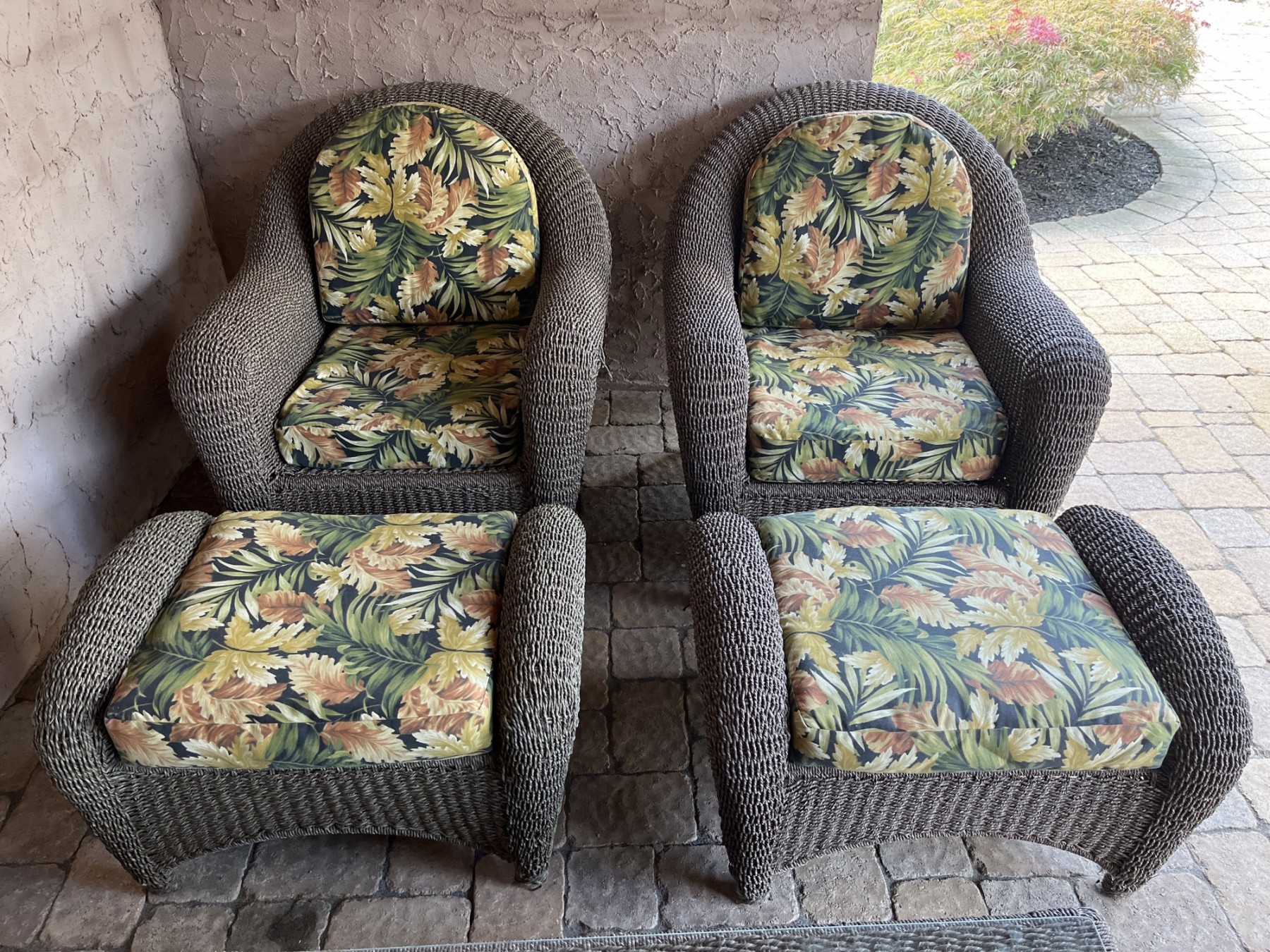 Resin Wicker arm chairs with ottomans - Cushions Included