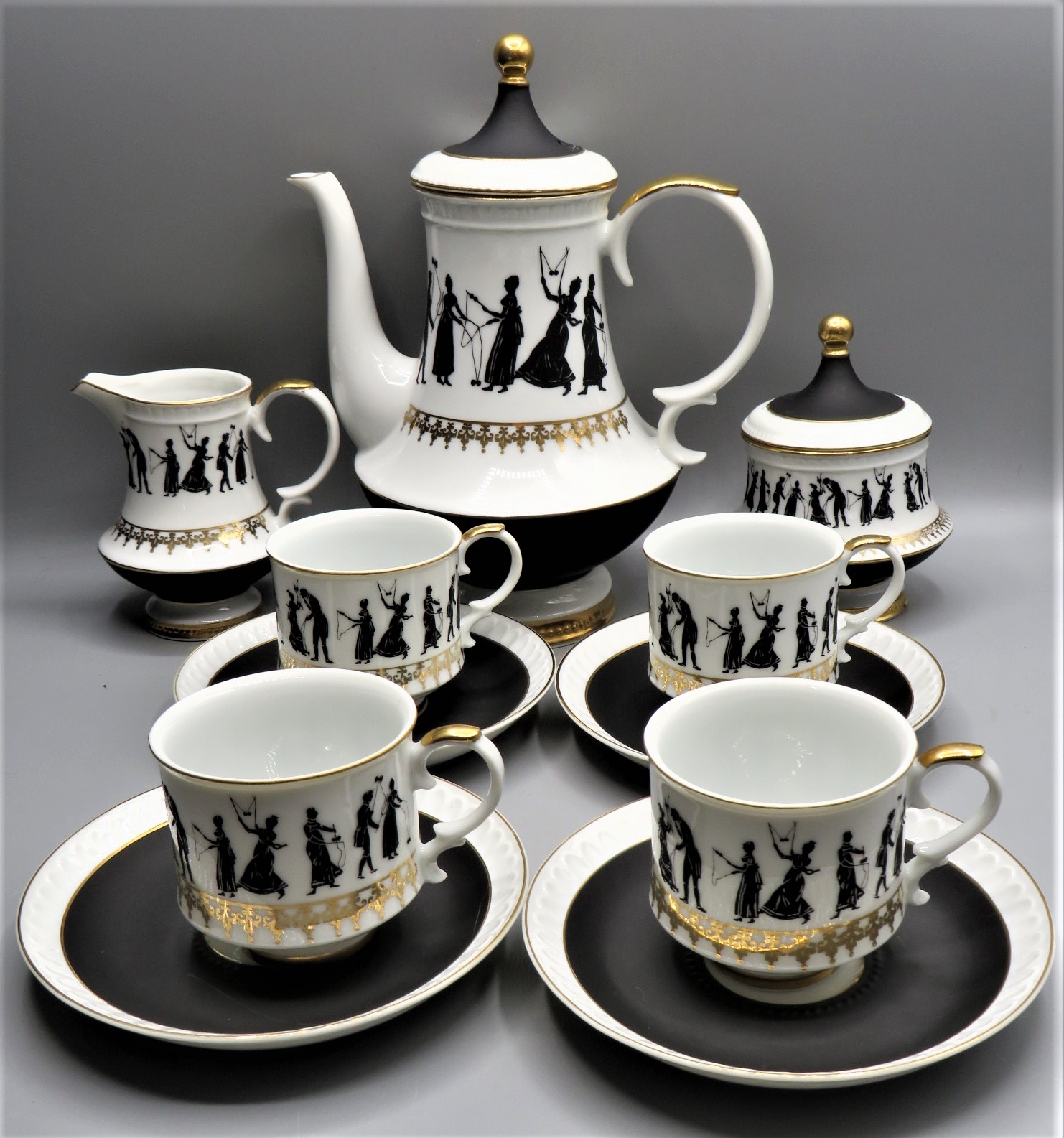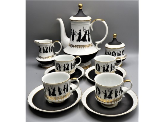Royal Crown "Mardi Gras" Teapot, Cups, Saucers, Creamer & Sugar Bowl