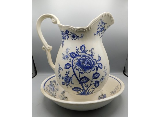 Royal Sealy Hand Painted Floral Pattern Pitcher With Bowl