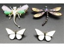 Two Small White Butterfly Pins - 1"L each