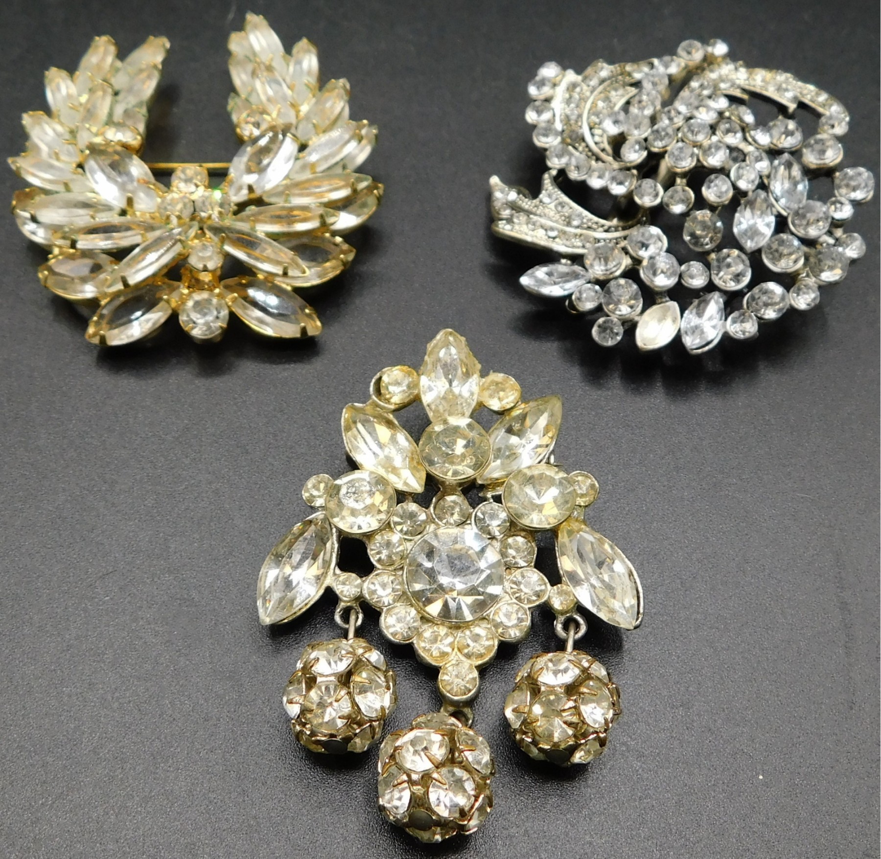 Three Rhinestone Ball Dangle Pin - 2"L x 2.5"H
