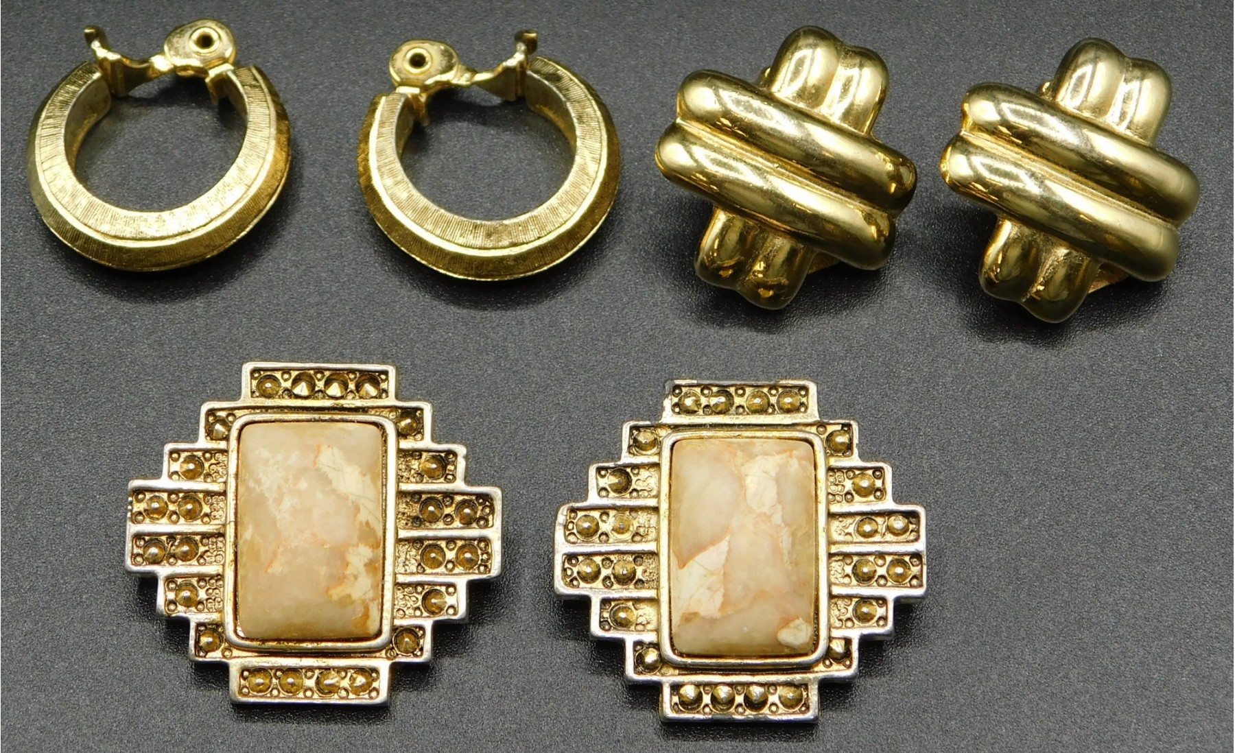 Set Of Three Pairs Of Gold Tone Clip On Earrings