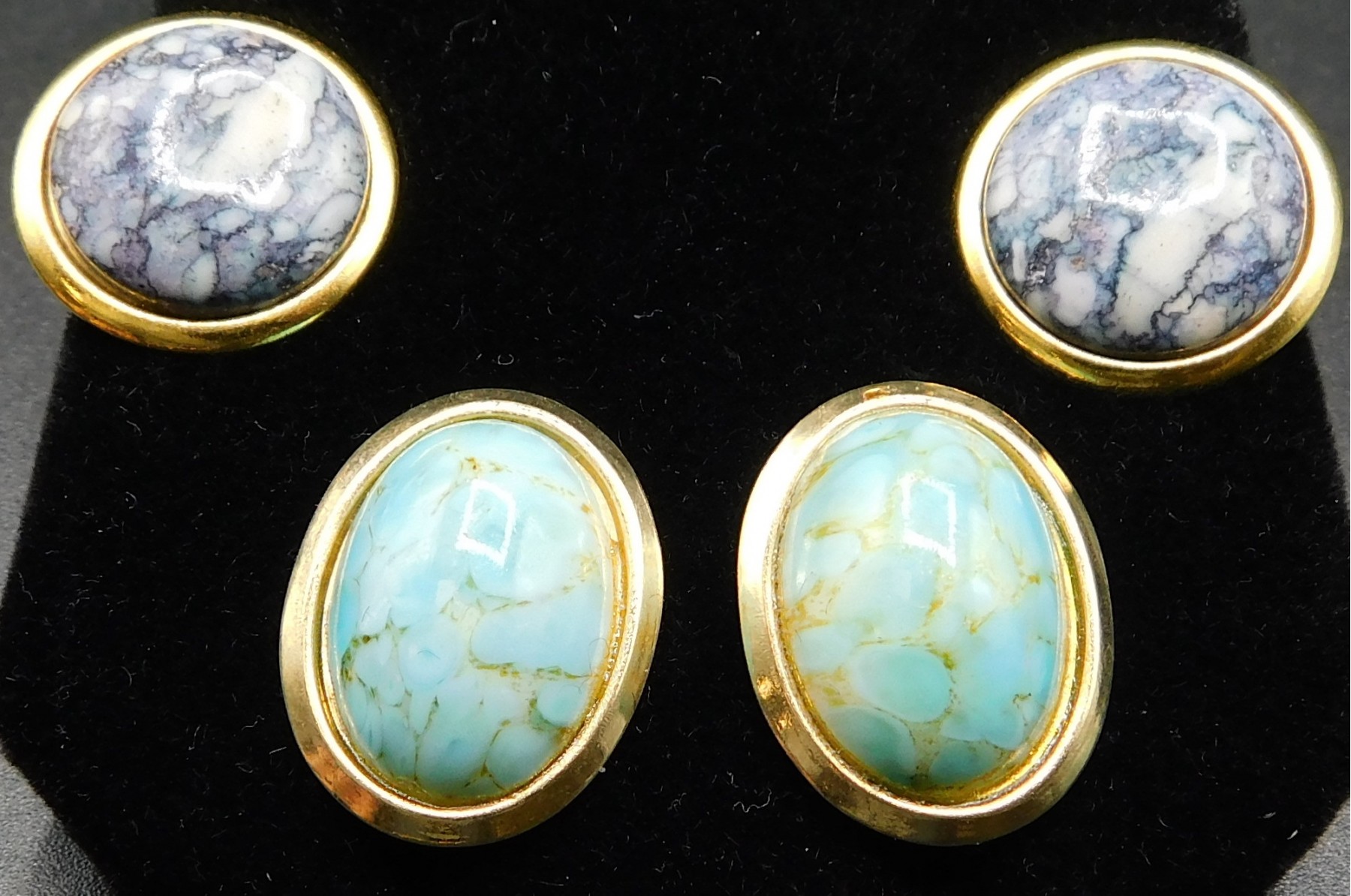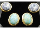 Set Of Two Gold Tone Faux Marble Earrings