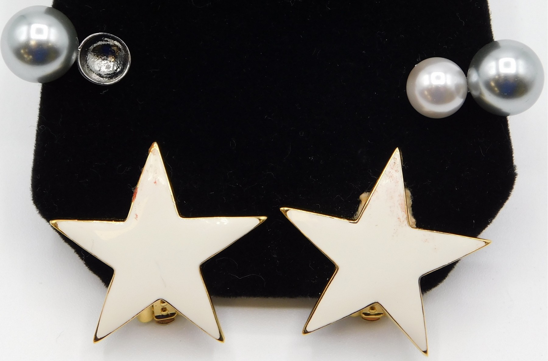 Gold Tone White Stars- stains on stars; sold as is - 1"L x 1"W