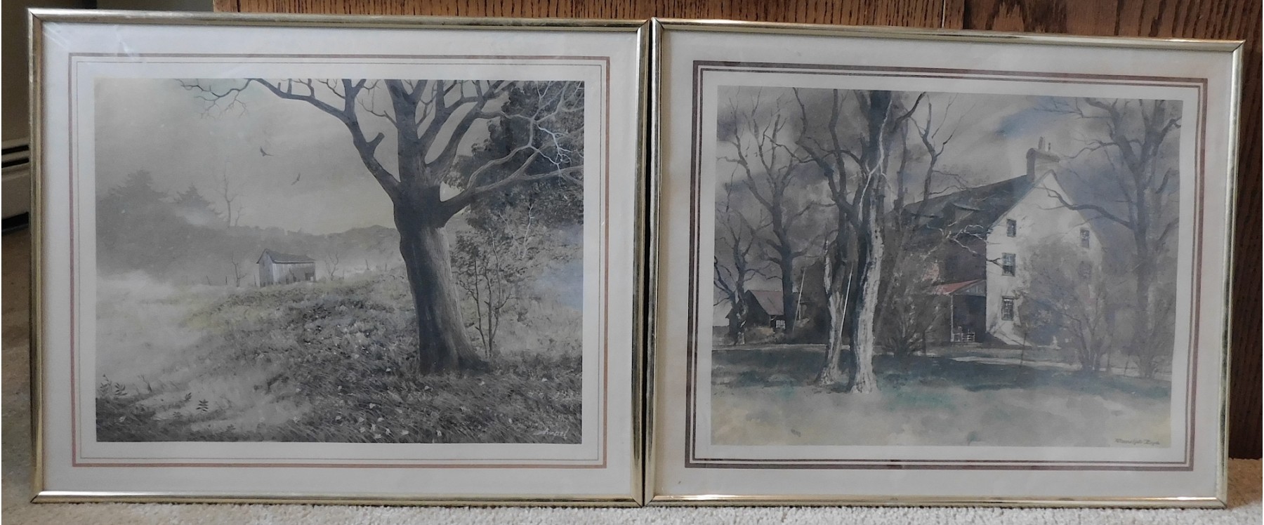 Two Framed Prints: Gary Ampel "The Barn On A Hill" & Randolph Bye "The Cottage"