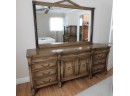 Unique Antique Dresser With Mirror And Brass Adornments