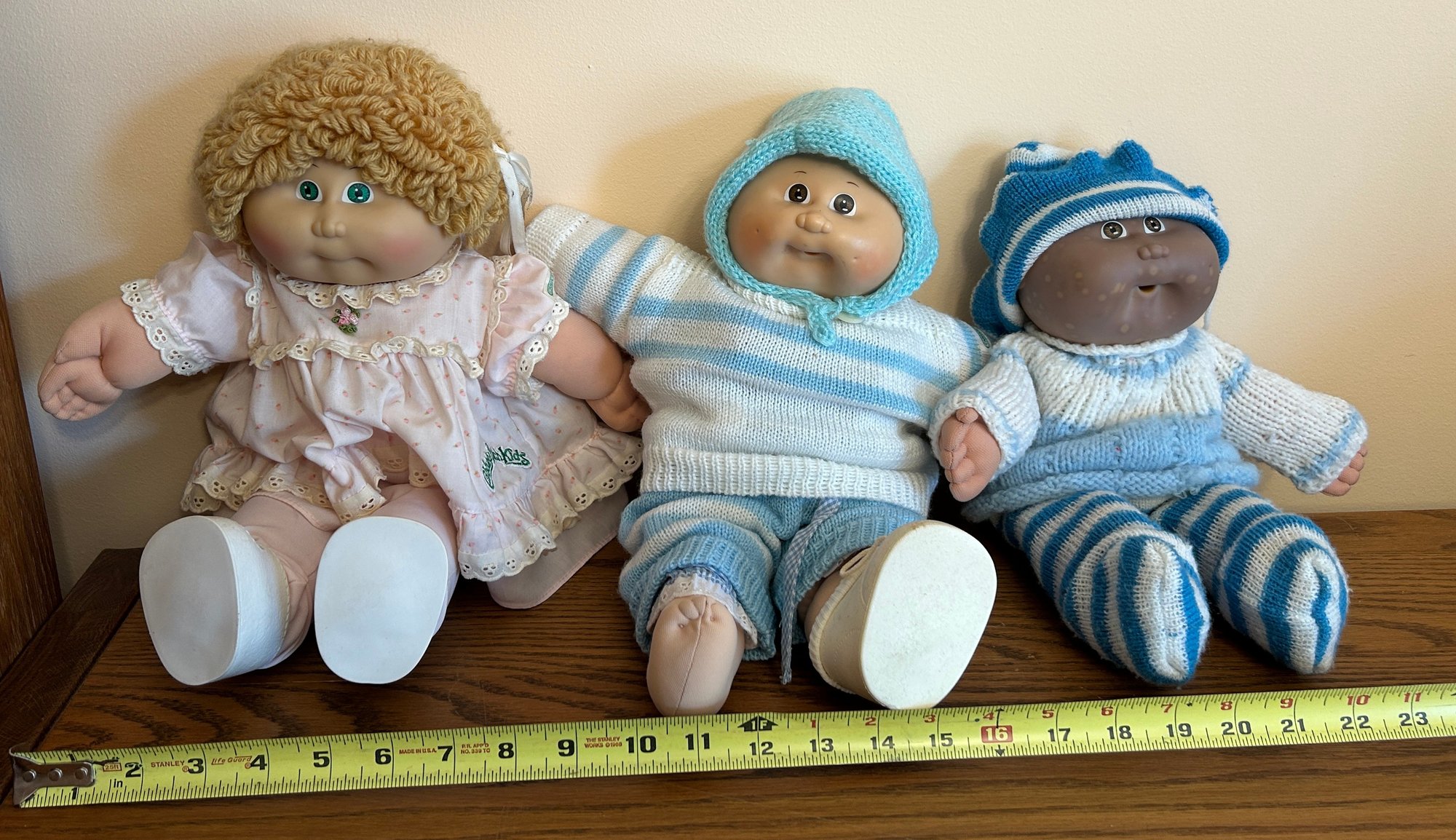 vintage Cabbage Patch Kids dolls Produced in the 1980s, 3 dolls