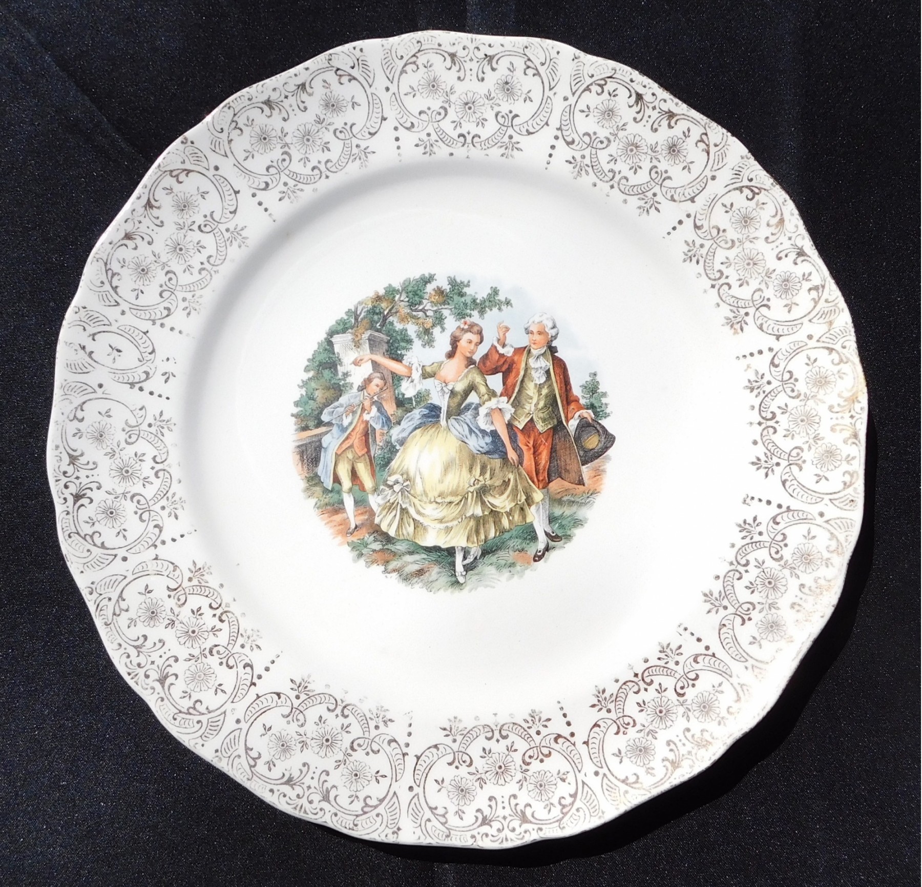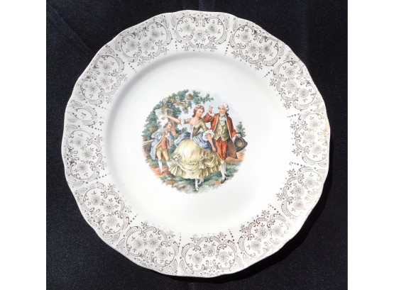 Eggshell Georgian Courting Couple Collector Plate 22k Gold