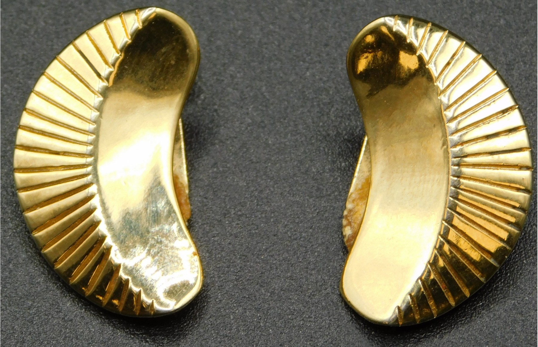 Vintage Volupte Engraved Crescent Clip On Earrings