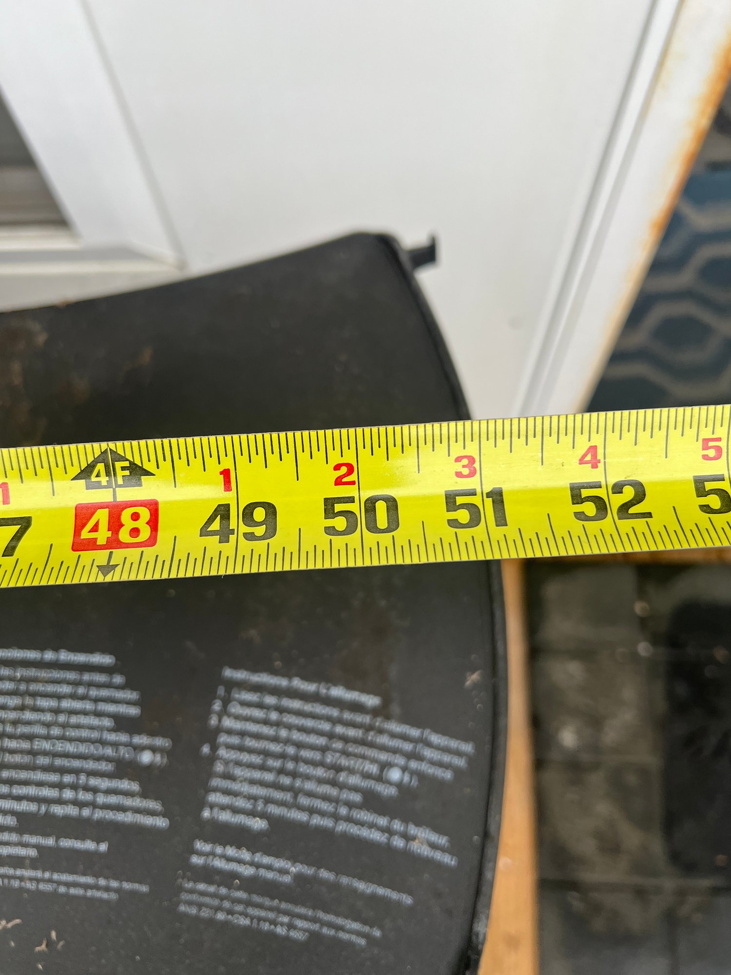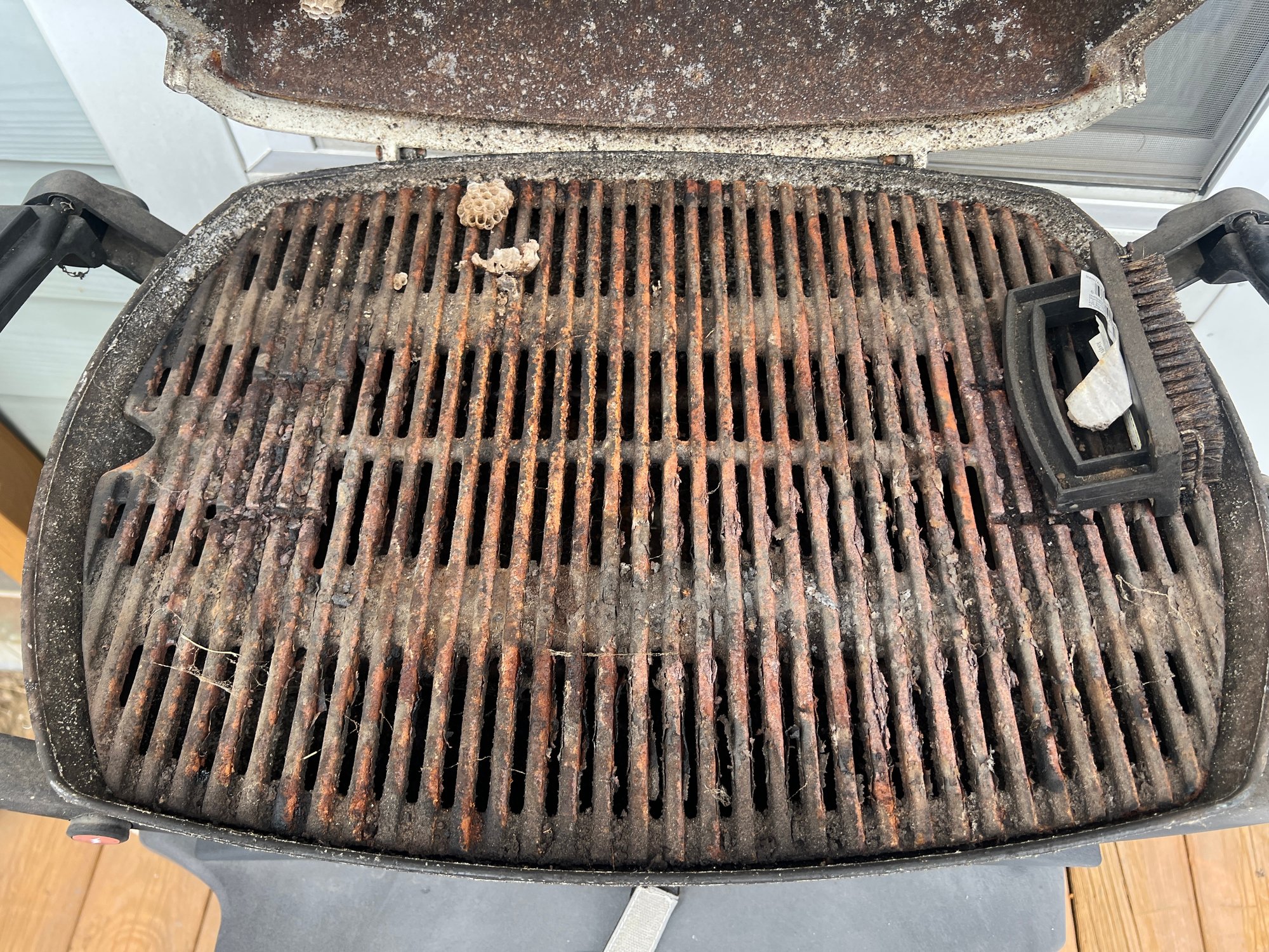 The grill comes permanently mounted to a heavy-duty rolling cart with integrated tool hooks and a lower storage rack. Two folding side tables provide ample prep space and can be tucked away for a smaller storage profile.