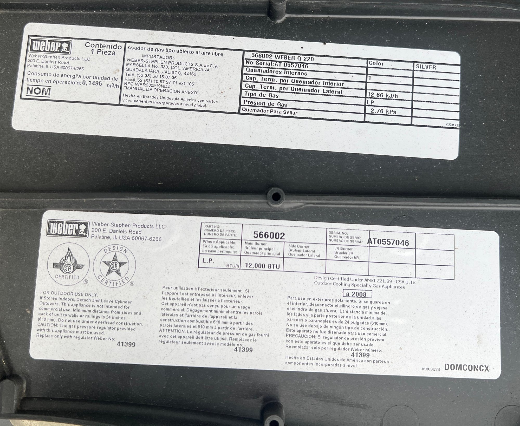Weber Q 220 Propane Gas Grill With Rolling Cart Cream & Black Series