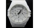 White Stainless steel case and bracelet.
