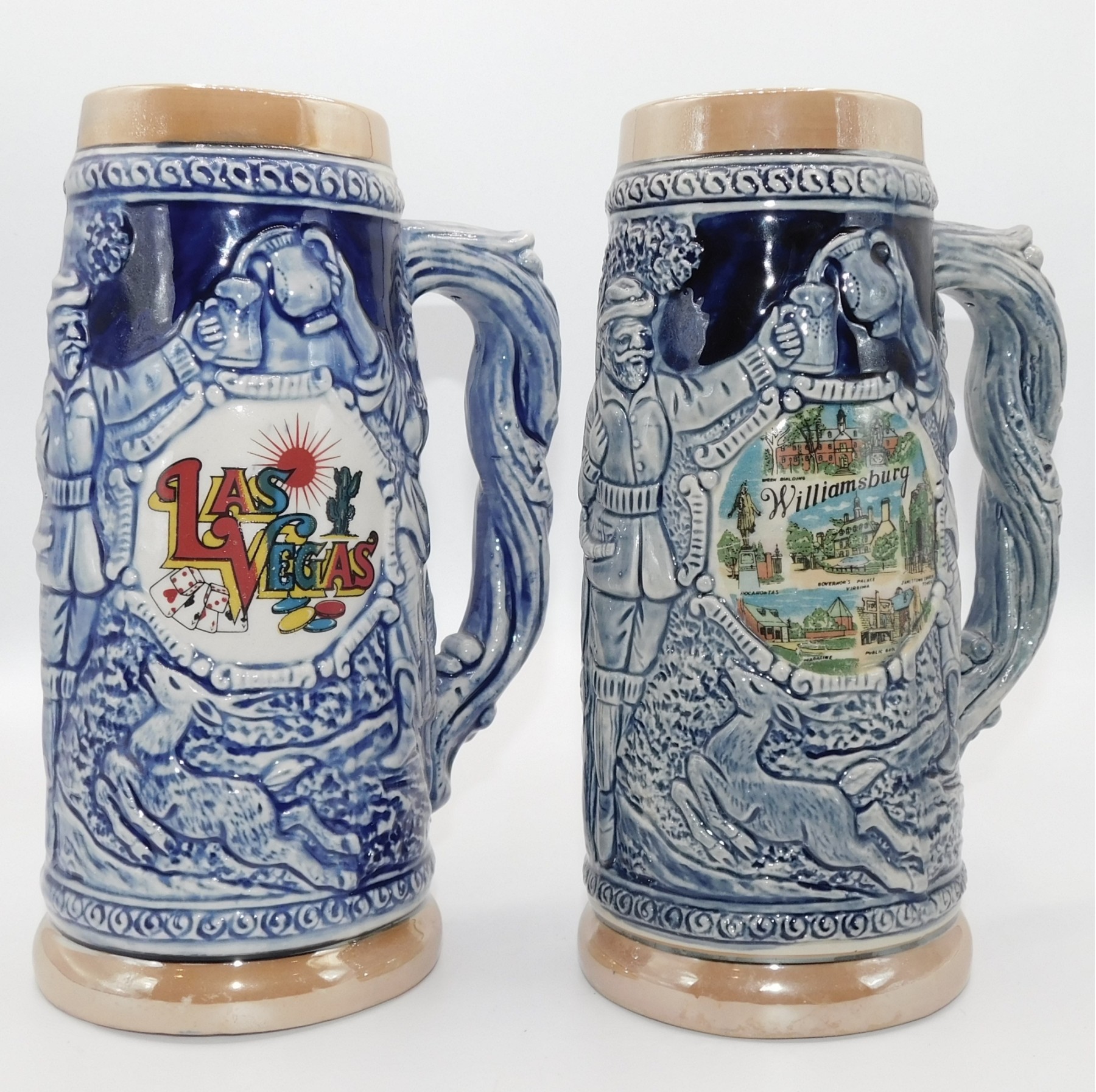 Williamsburg Beer Stein & Las Vegas Beer Stein Made In Japan 9"H