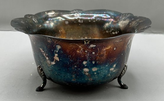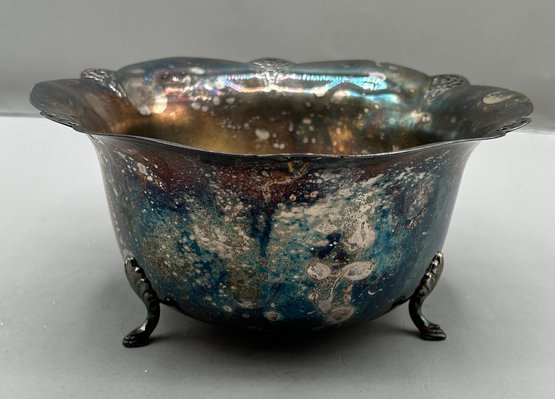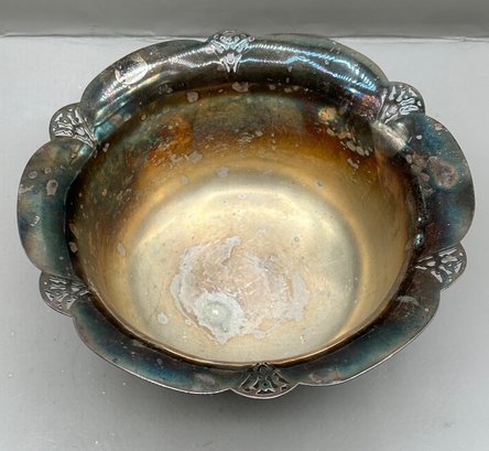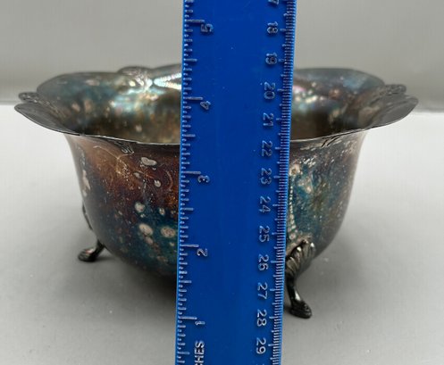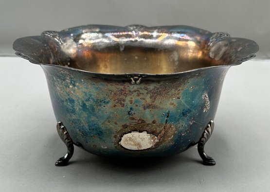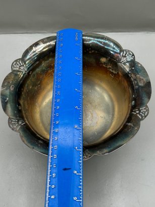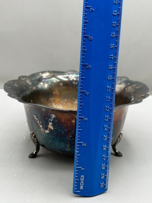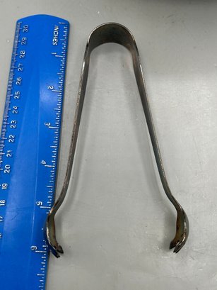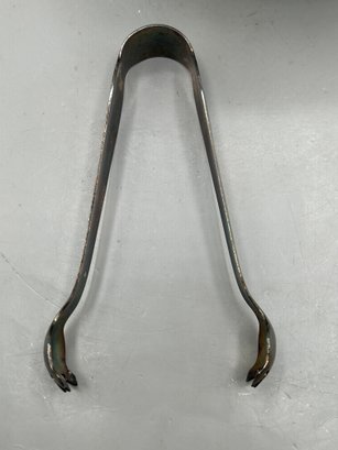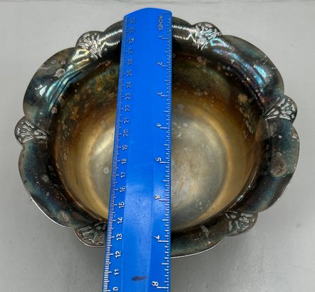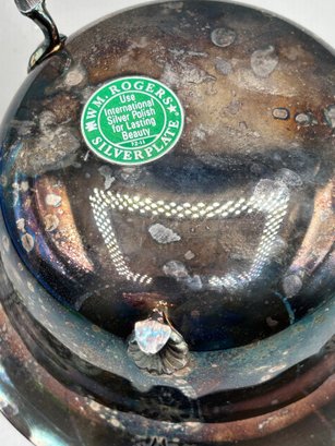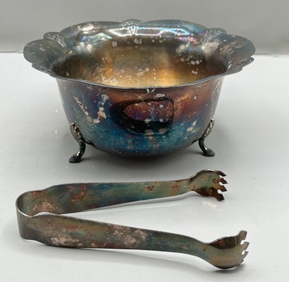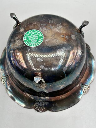 WM Rogers Silver plated footed ice bucket with a scalloped edge and matching tongs, 2 pcs
