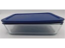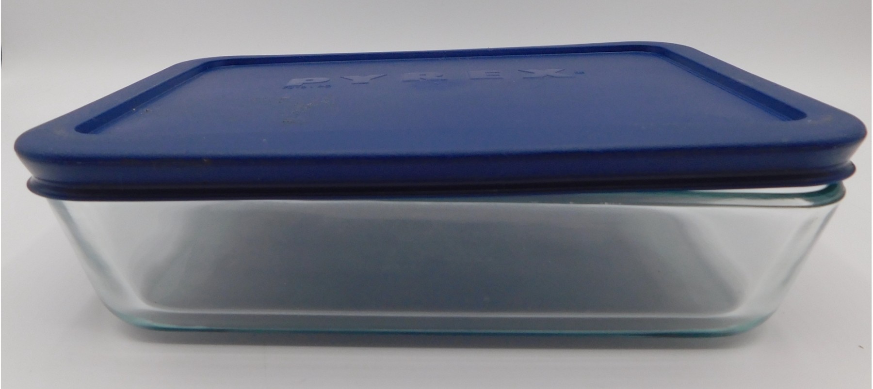 SET INCLUDES: One 3-cup rectangular glass food storage sets with two matching blue plastic lid