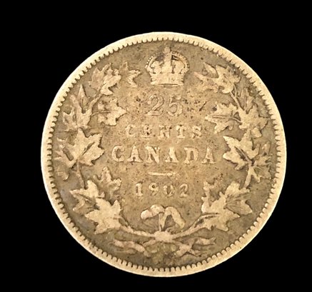 1902 Canada 25 Cents Silver Coin - #JC-B7