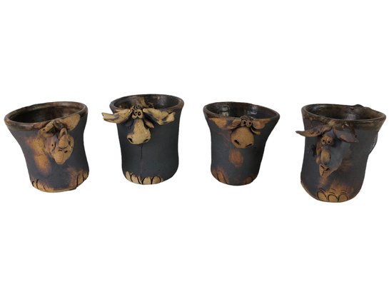 Three of the four mugs are signed and/or dated on the bottom.