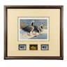 Includes print, two postage stamps and engraved medallion framed and matted under glass.