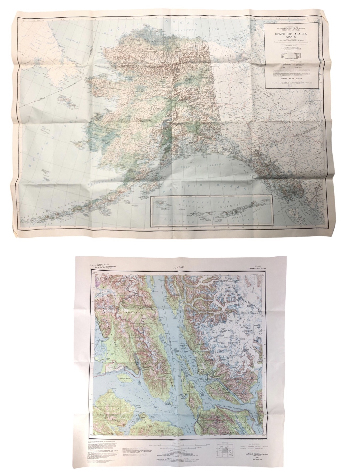 Light stain noted on the back of the State Of Alaska map.