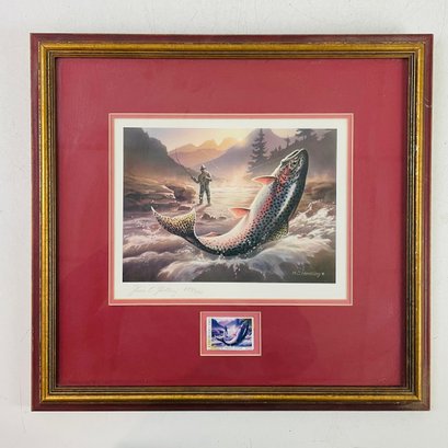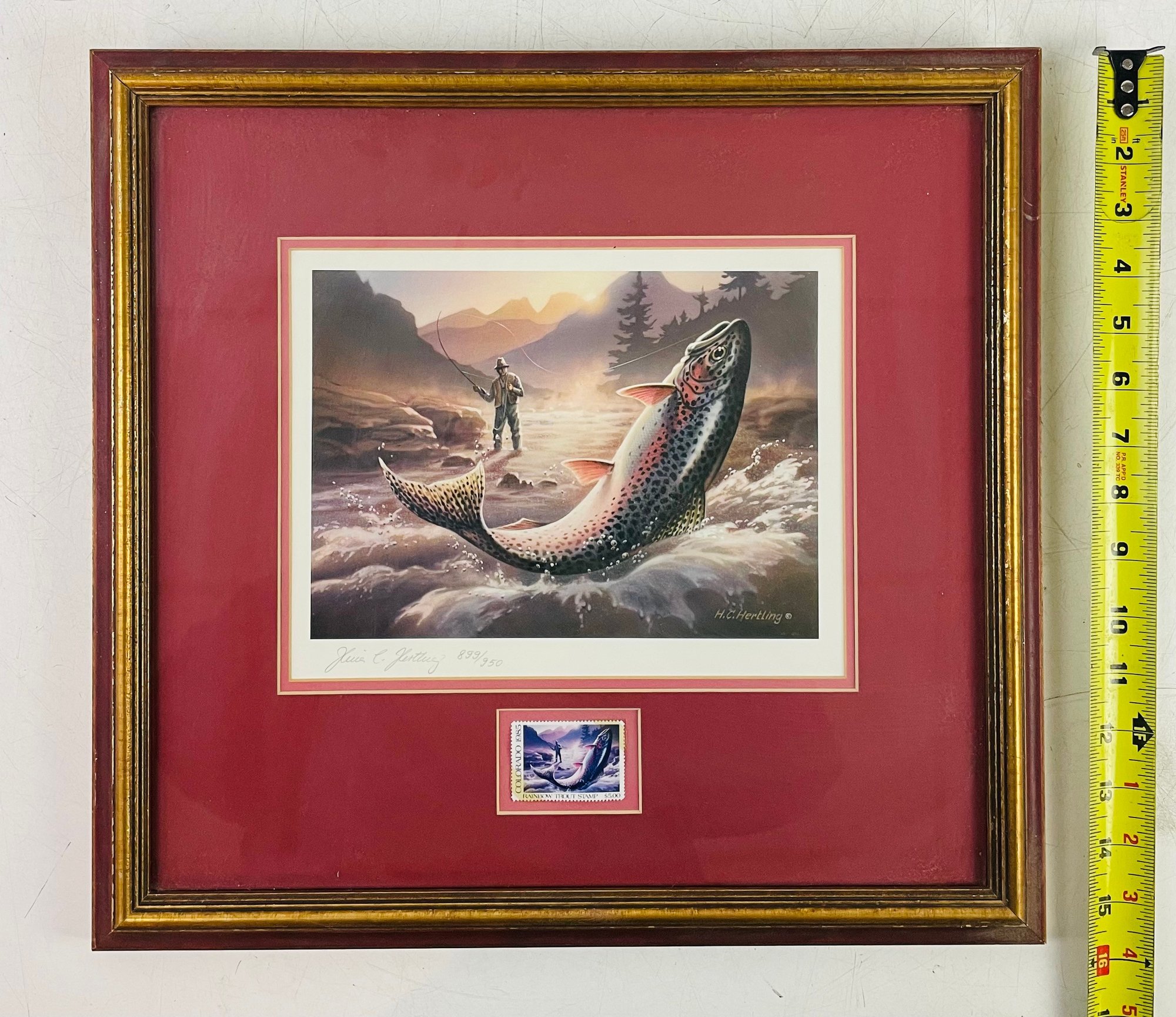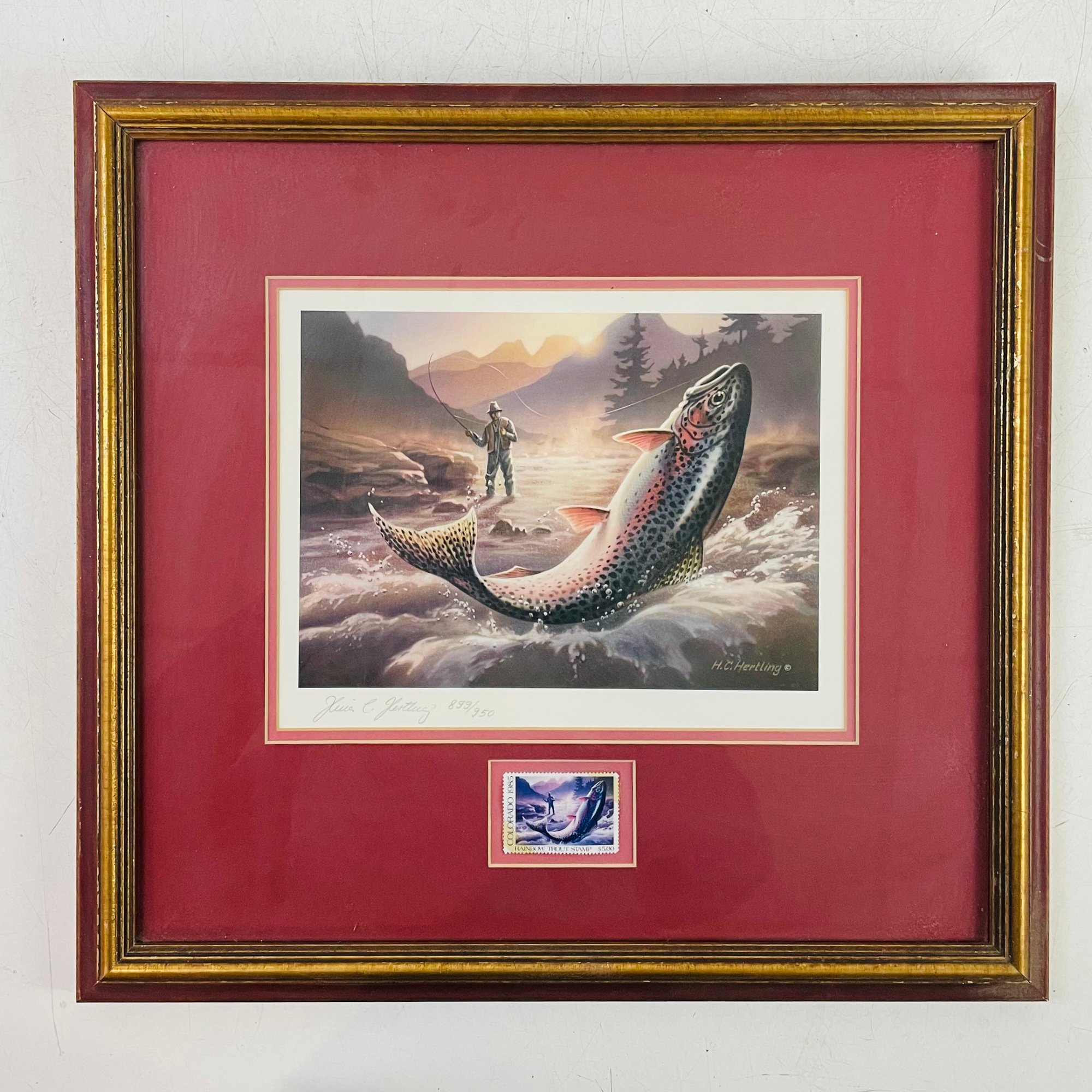 •H.C. Hertling signed limited edition trout fishing print and matching stamp - pencil signed and numbered 899/950.
