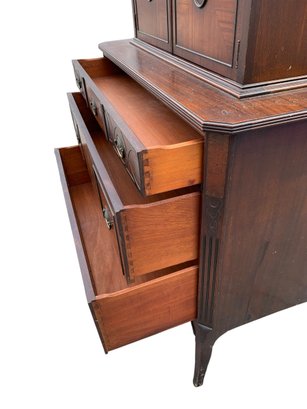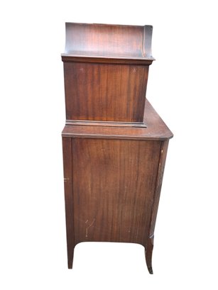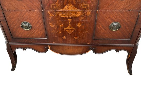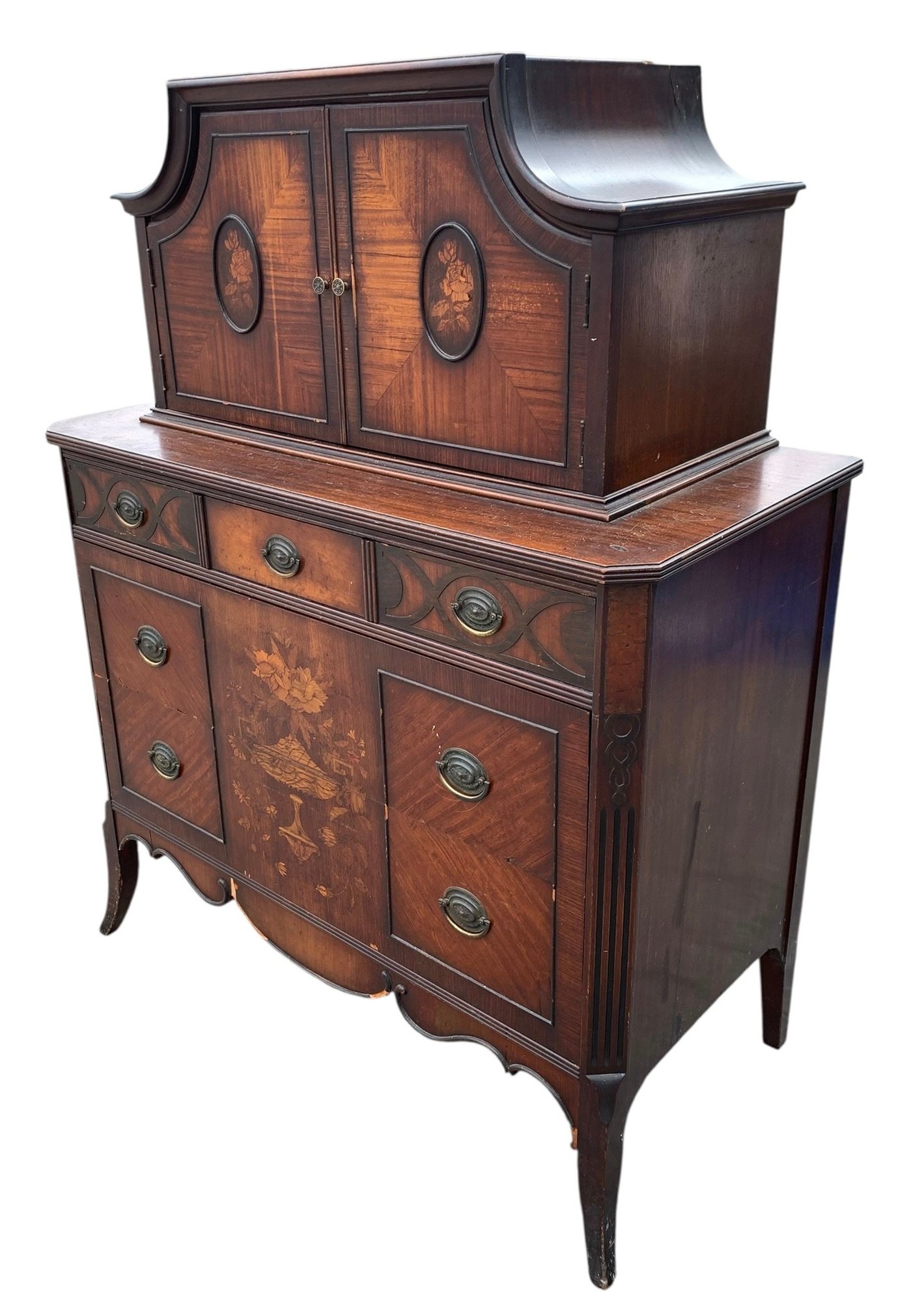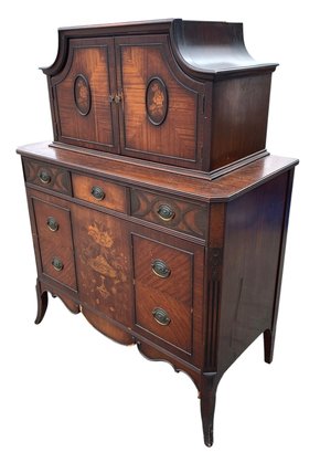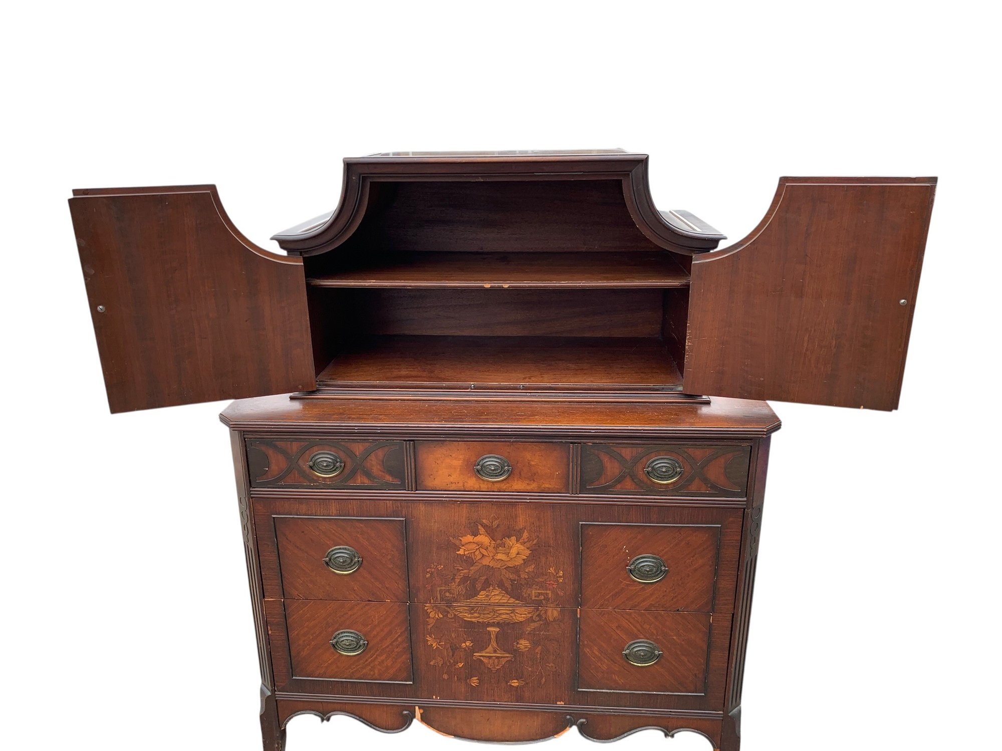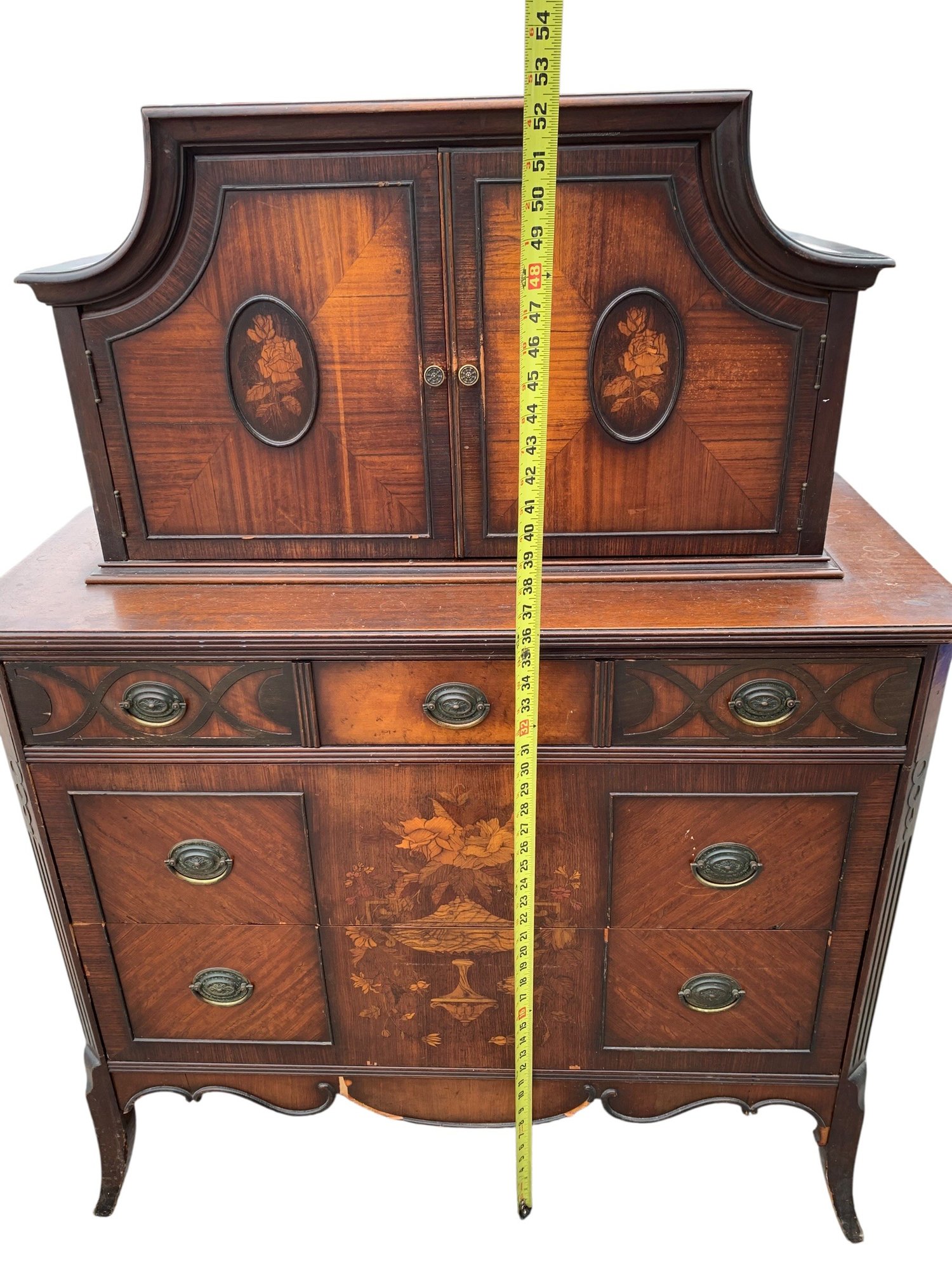 Chest features three dovetail drawers, while the cabinet reveals two interior shelves.