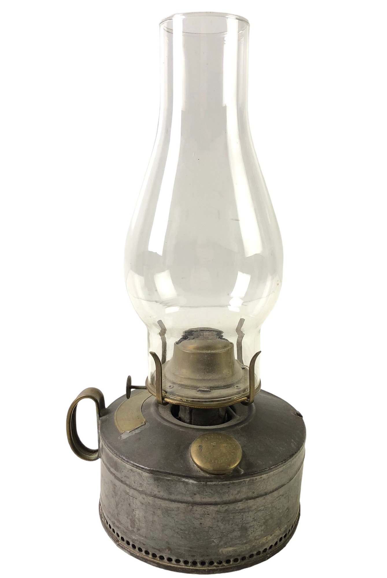 The glass chimney, while in good condition, does not fit snuggly atop the lamp.