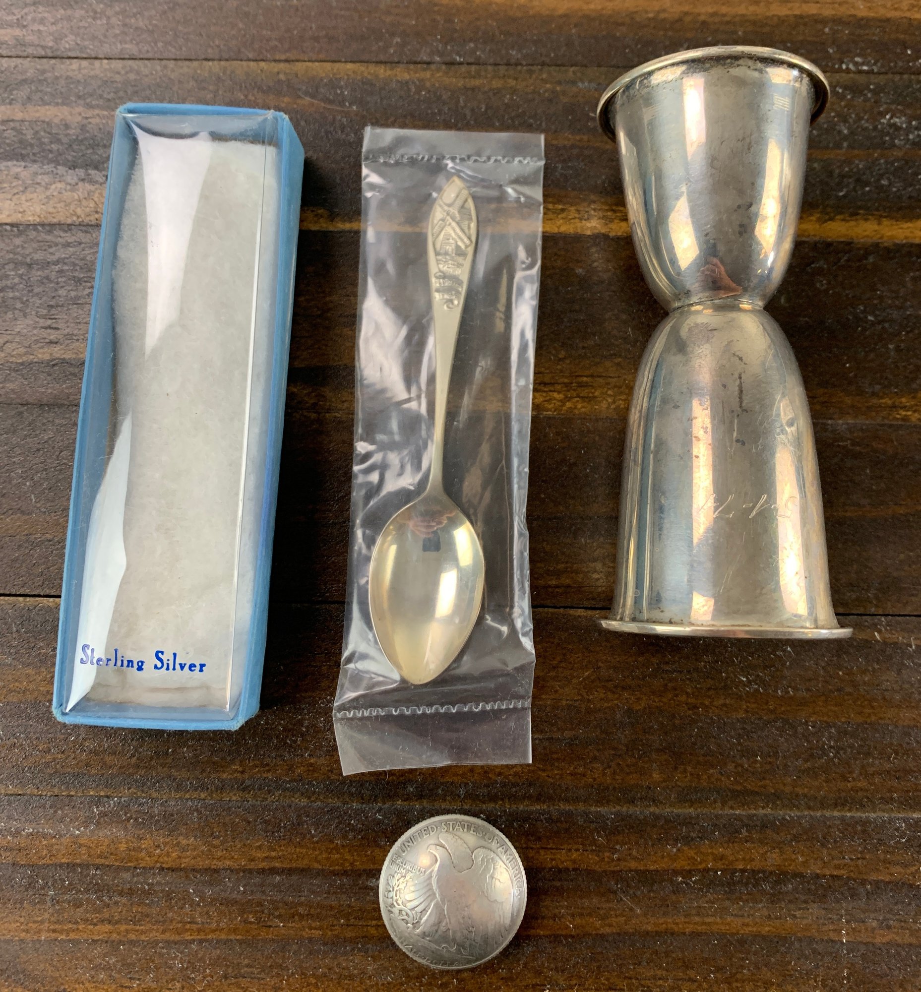 The jigger is stamped "Alvin Sterling S248" on the base.