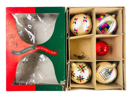 The ornaments are hand painted with original box - minor age appropriate wear.