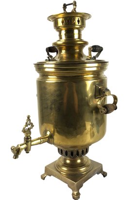 Brass with wooden handles.