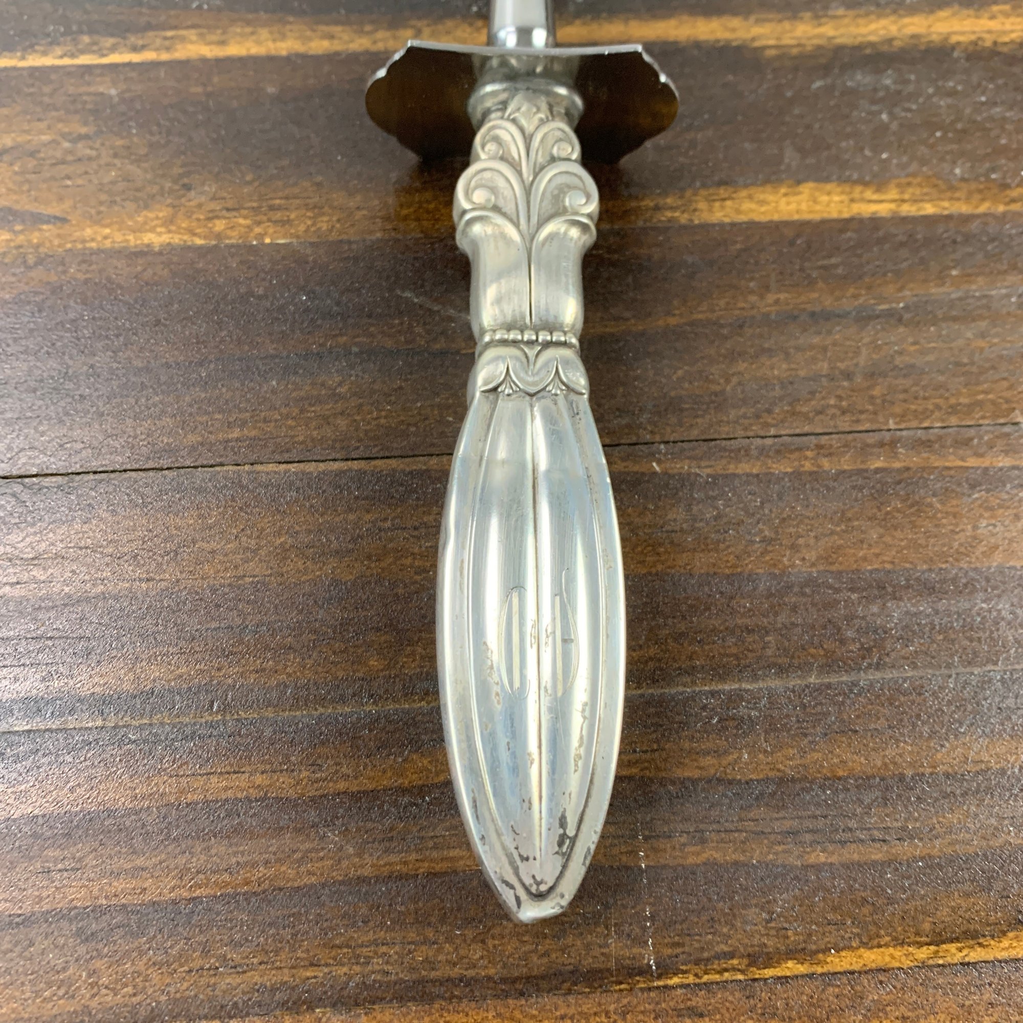 Hallmarked and stamped "Sterling" on the side of the handle.