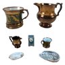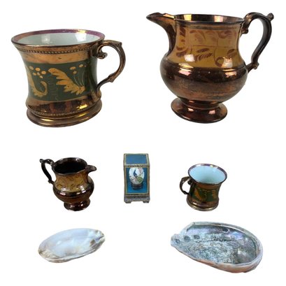 Pitcher has a chip on the spout, and hairline cracks noted in the mug (see photos #12-14).