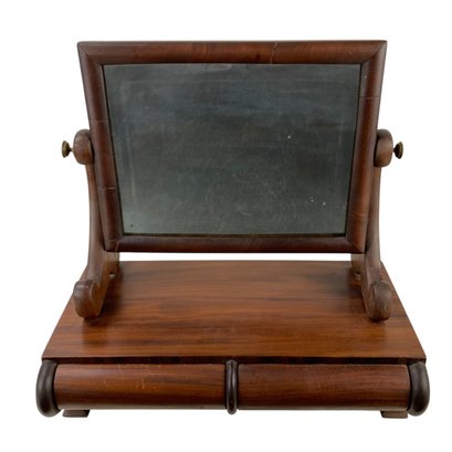 Features an articulating mirror and barrel front drawers.