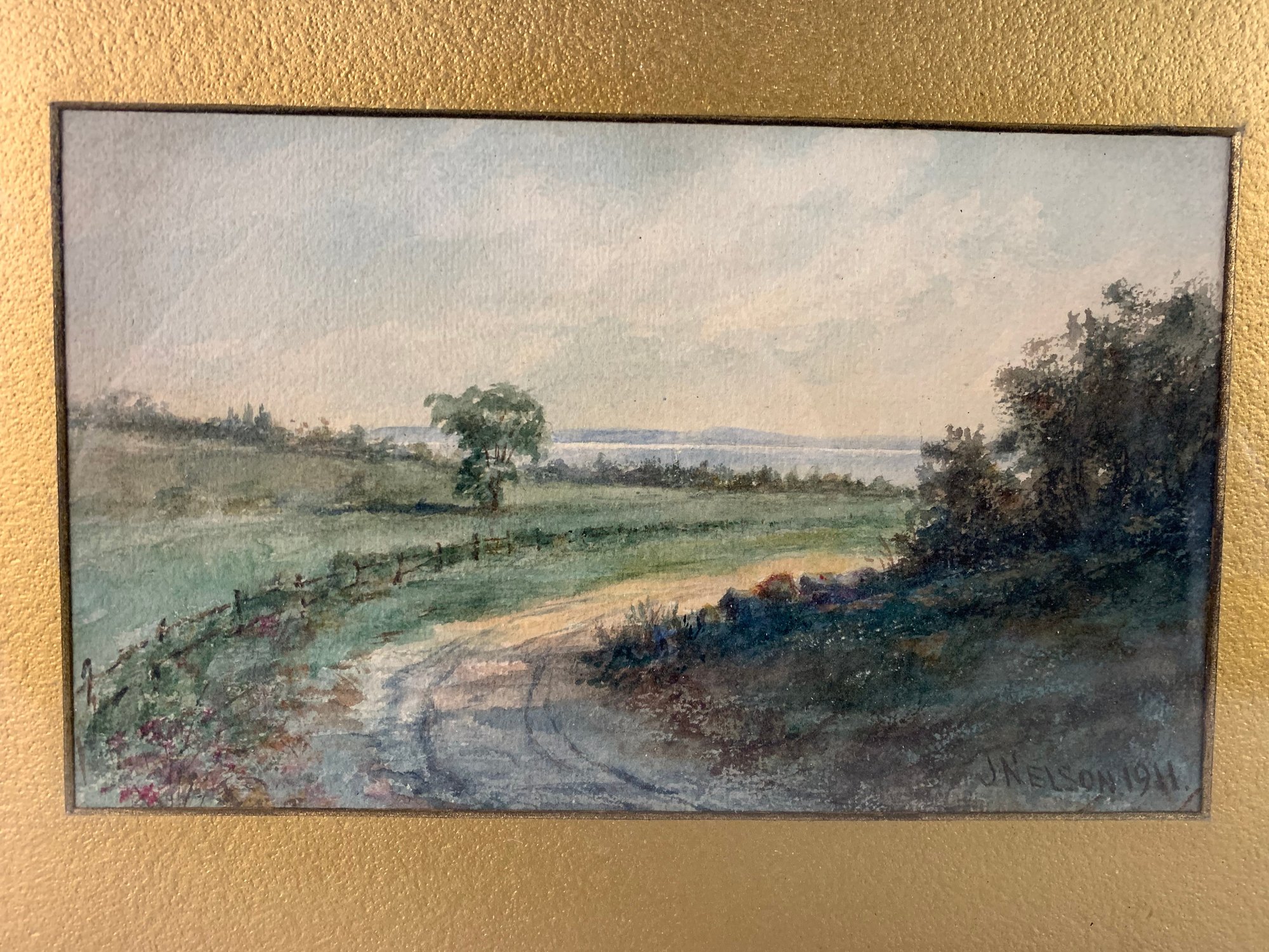 Framed and matted under glass.