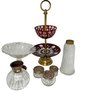 •(1) Ornate glass jar with metal lid (6 3/4 in).