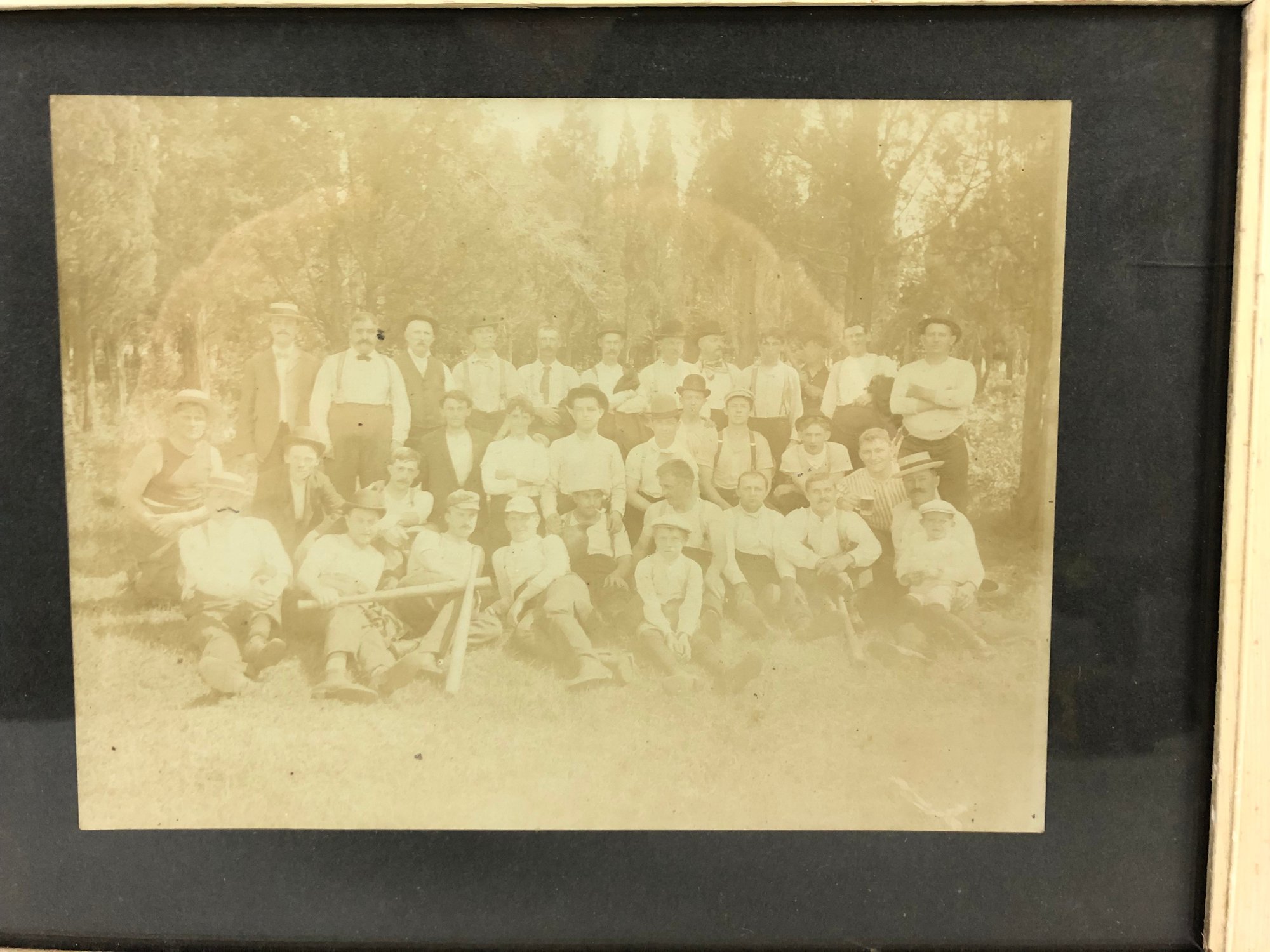 Framed and matted under glass, small crack noted on the right side.