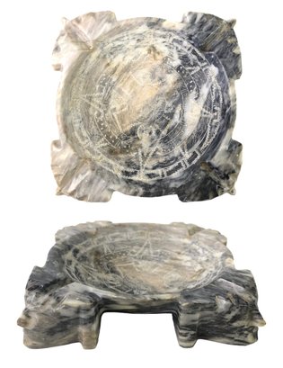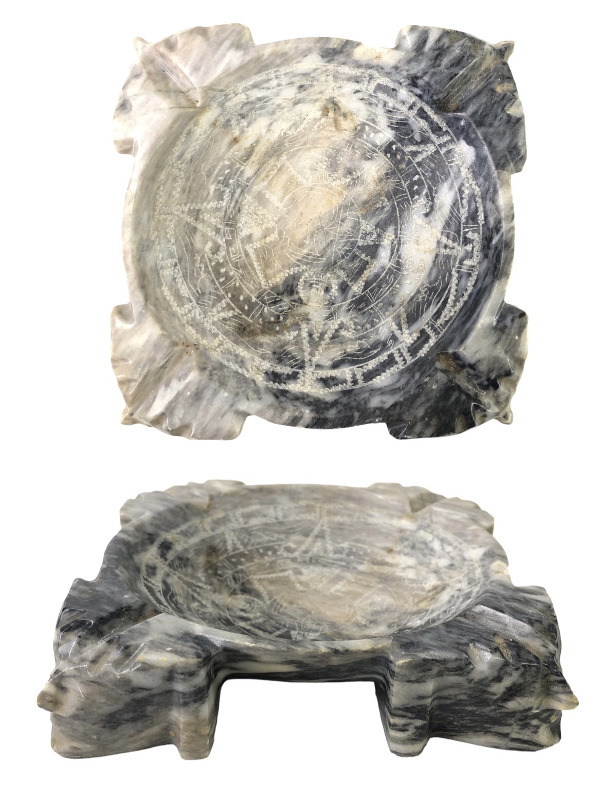 Includes carved Aztec faces on each corner foot, and an Aztec motif etched into the center.