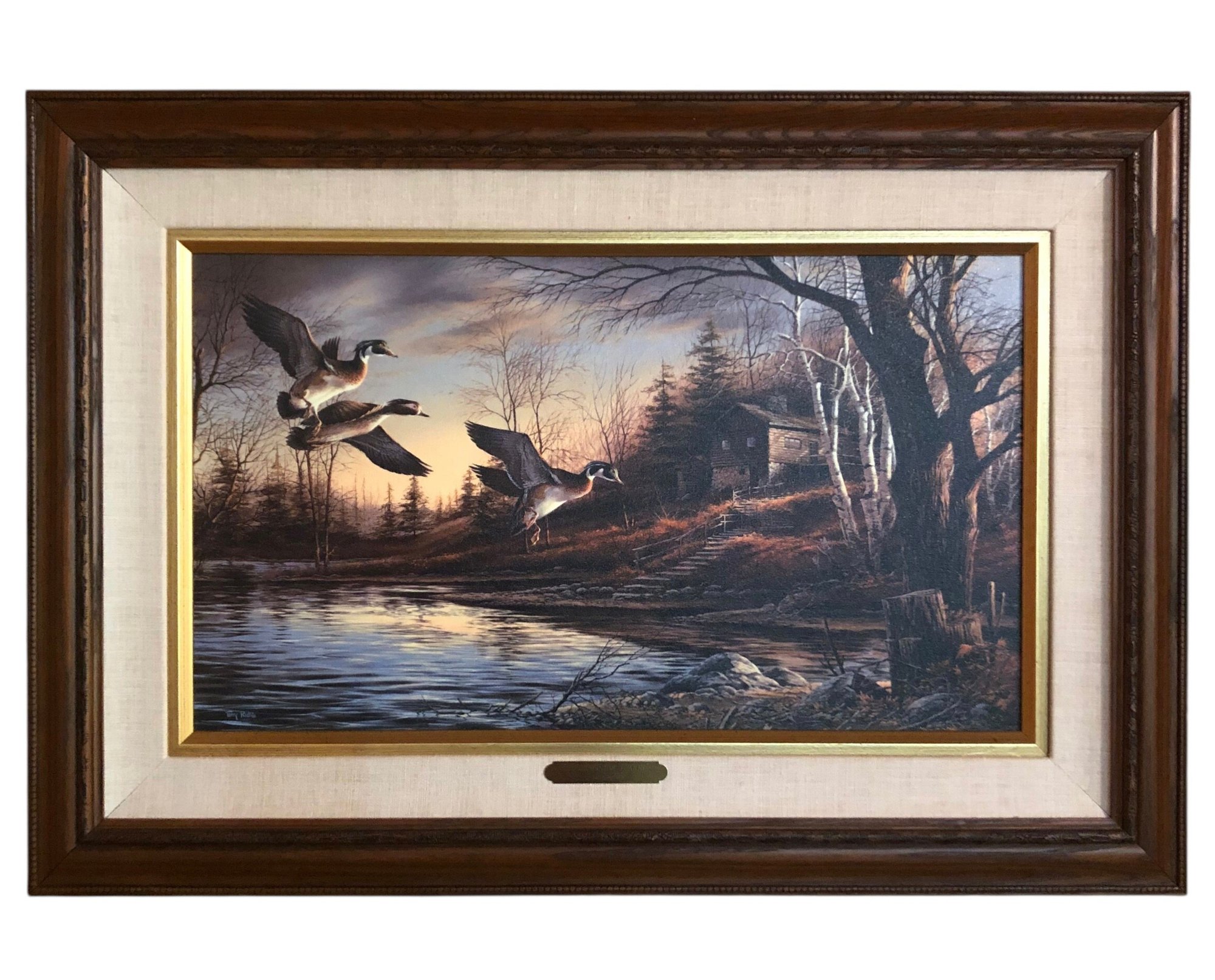 Signed in plate on the lower left with brass artist's plaque affixed on the front.