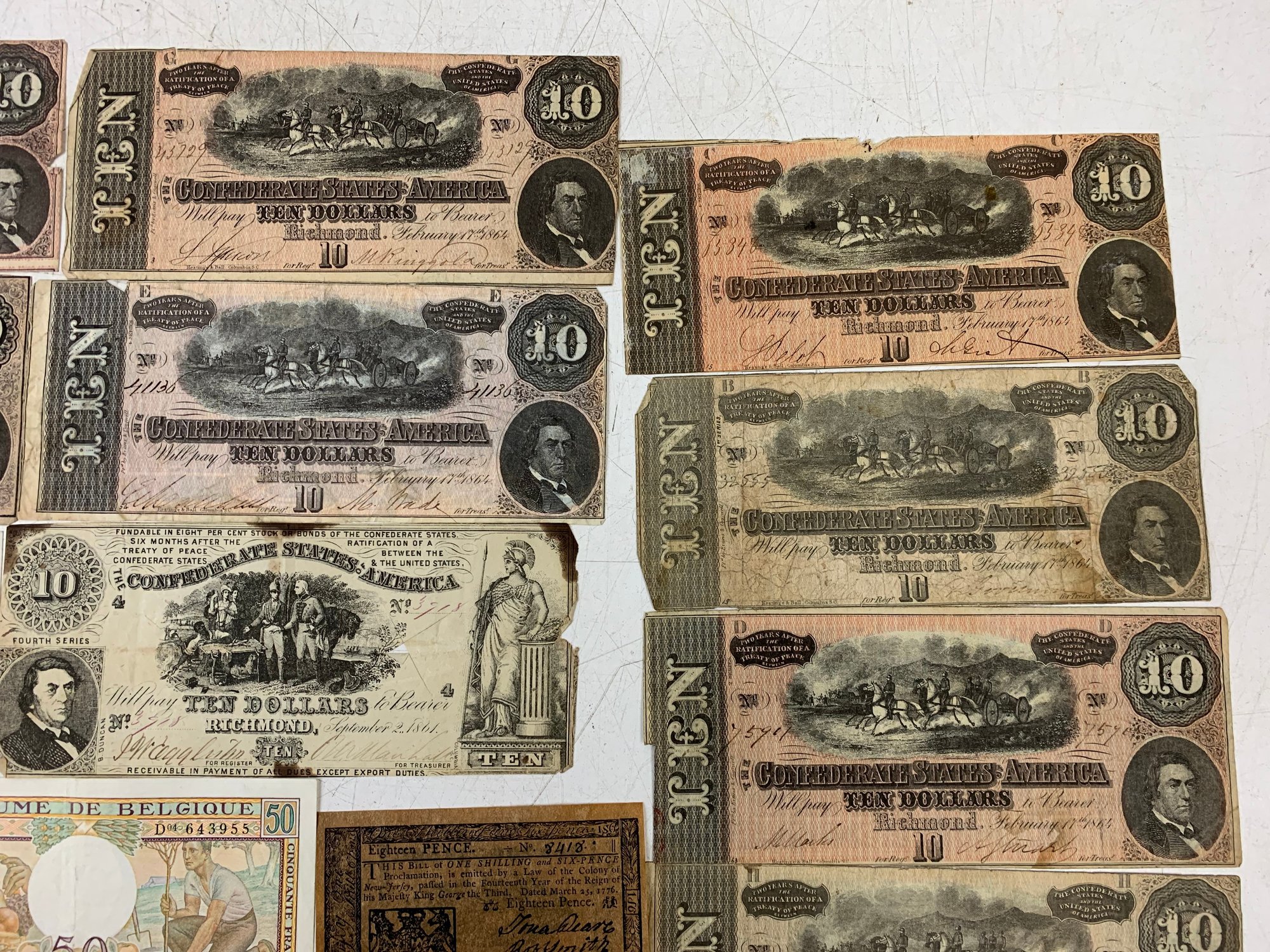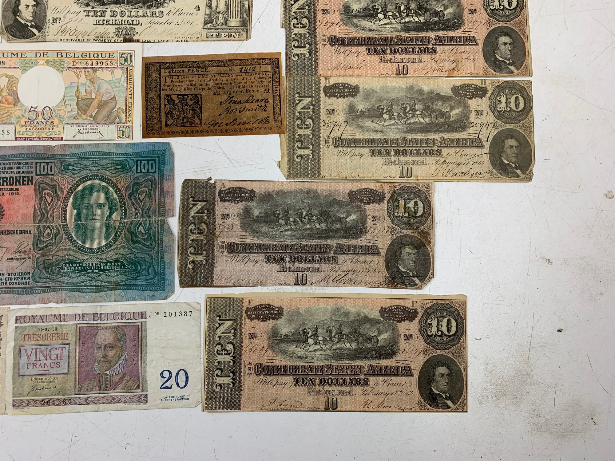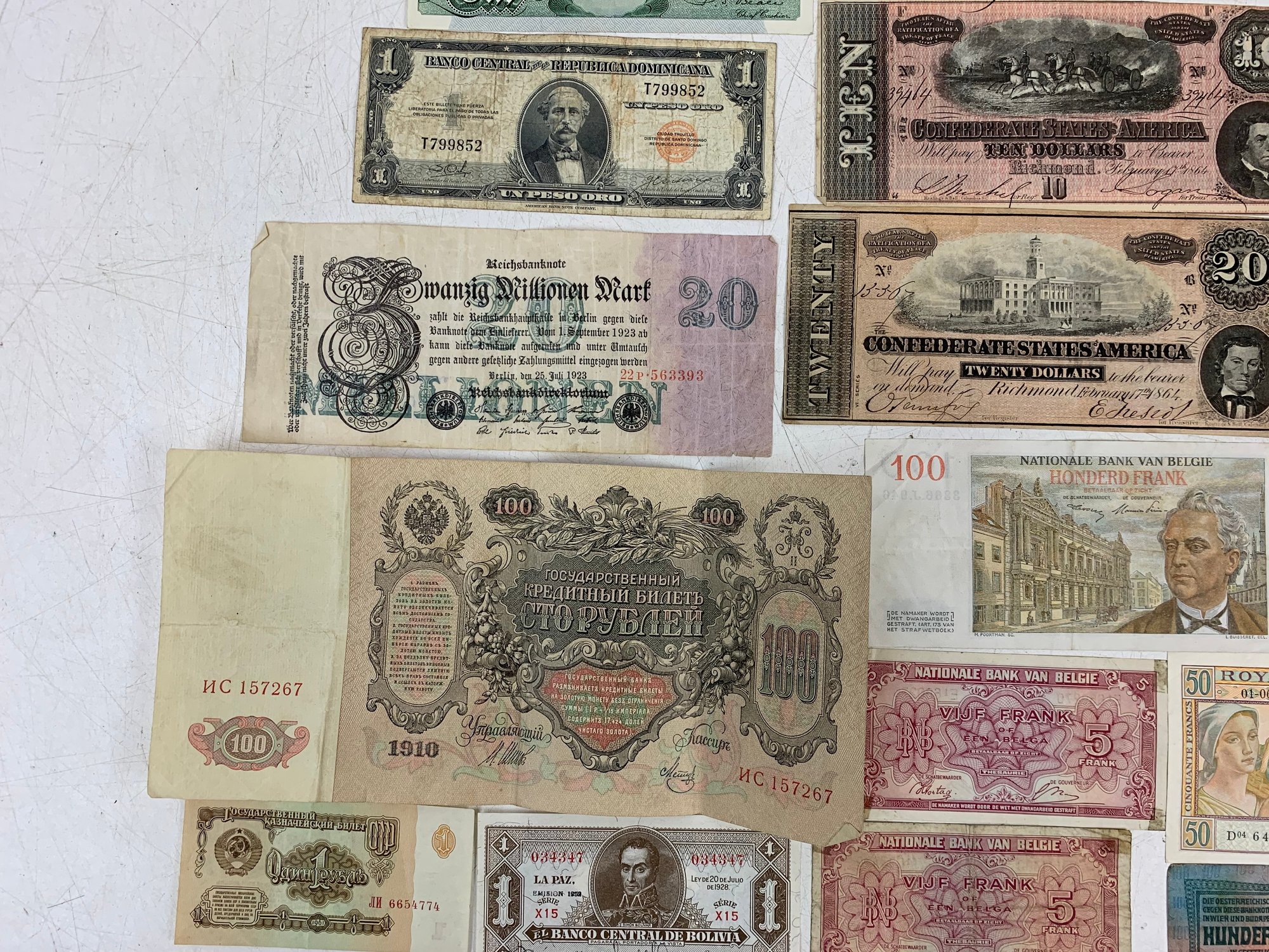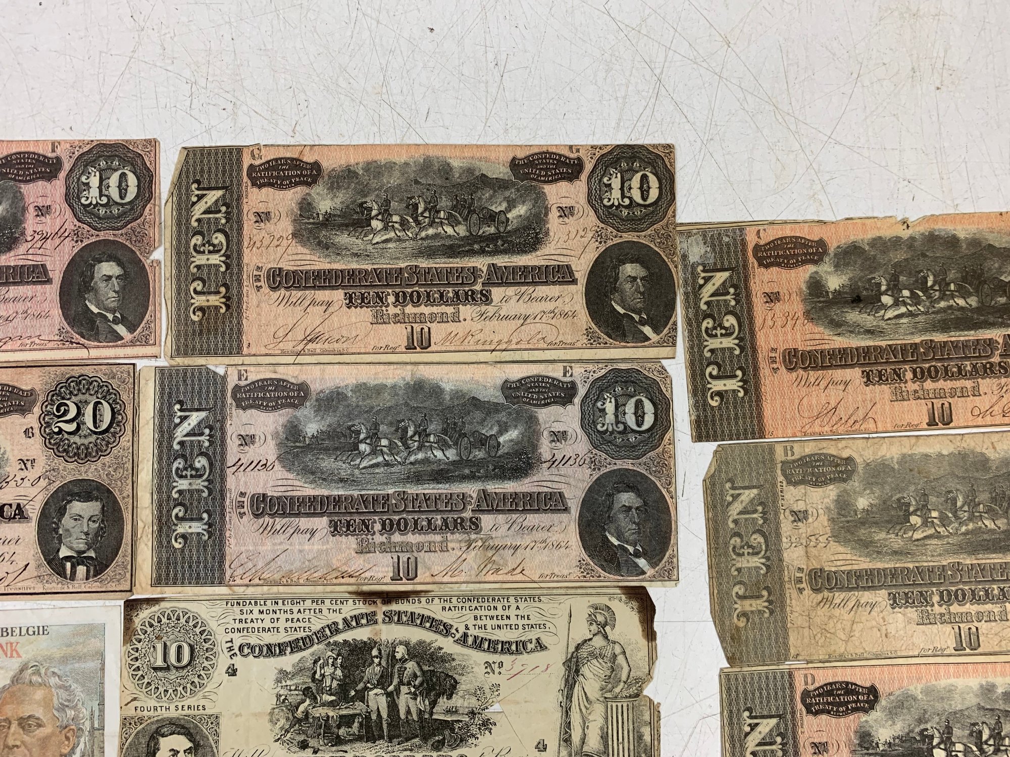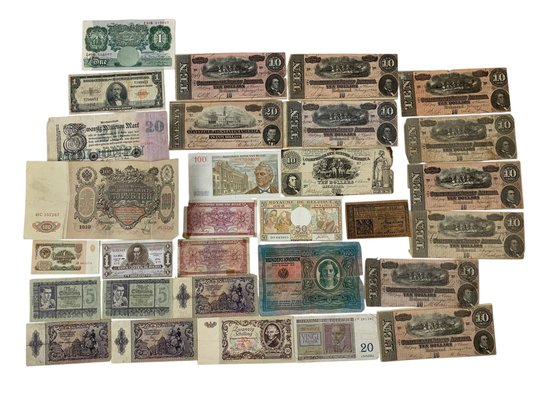 Bank Notes: 1861 & 1864 Confederate States Of America, 1910 Russian Rubles & More - #S15-3