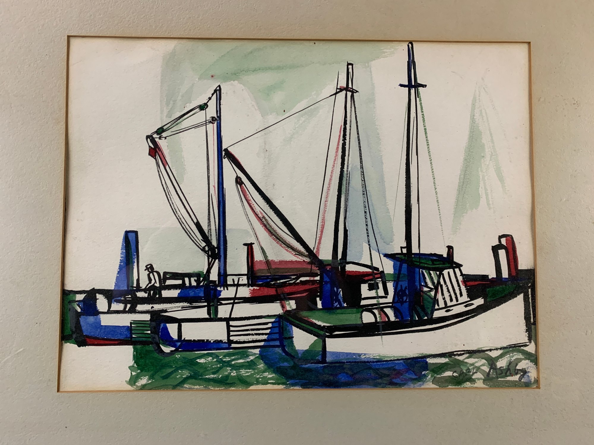 Framed and matted under glass.